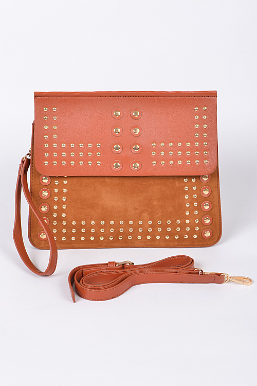 - * Gold Studded Clutch * 11W*9.25H*0.75D * Polyurethane,Mixed Metal
