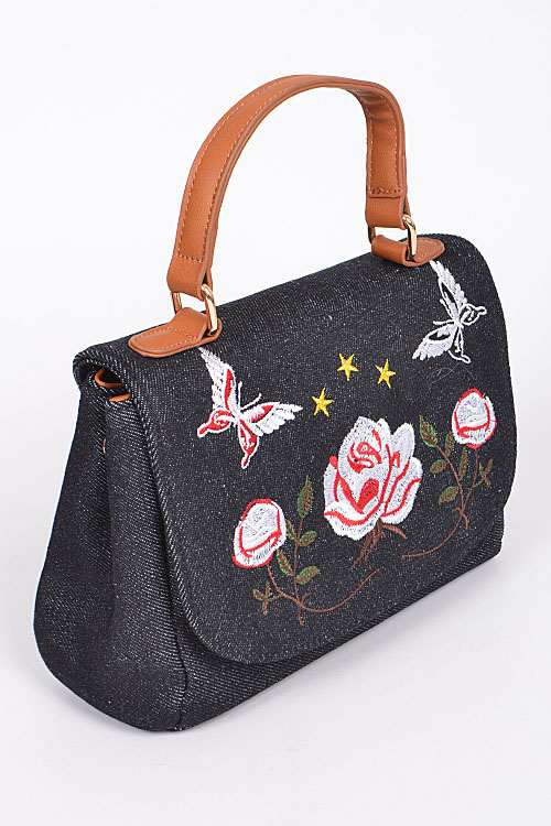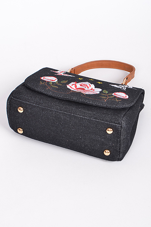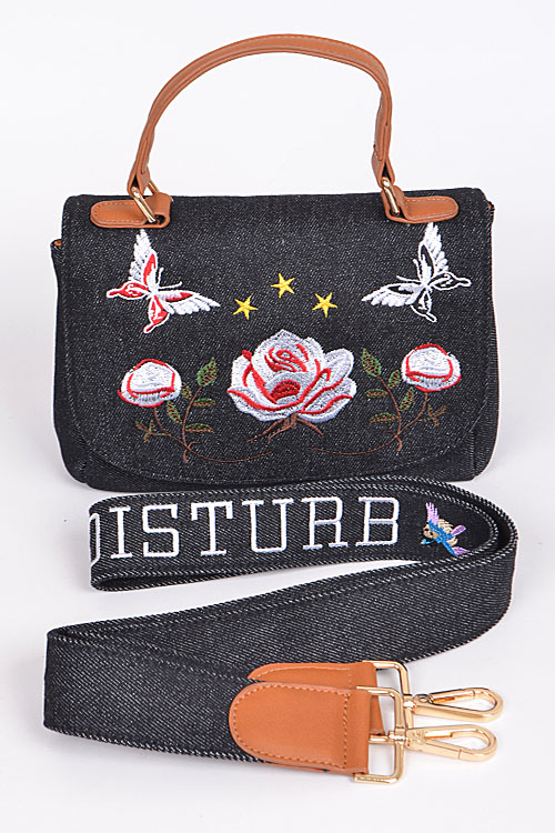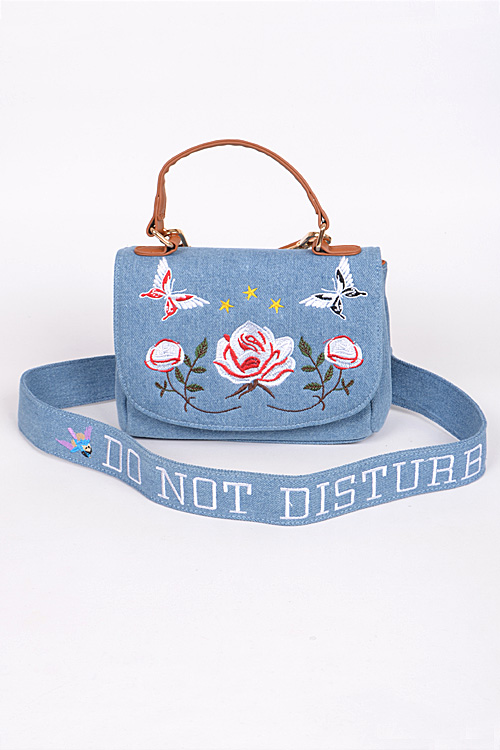 - * Floral Denim Clutch "Do not Disturb" Strap Detail