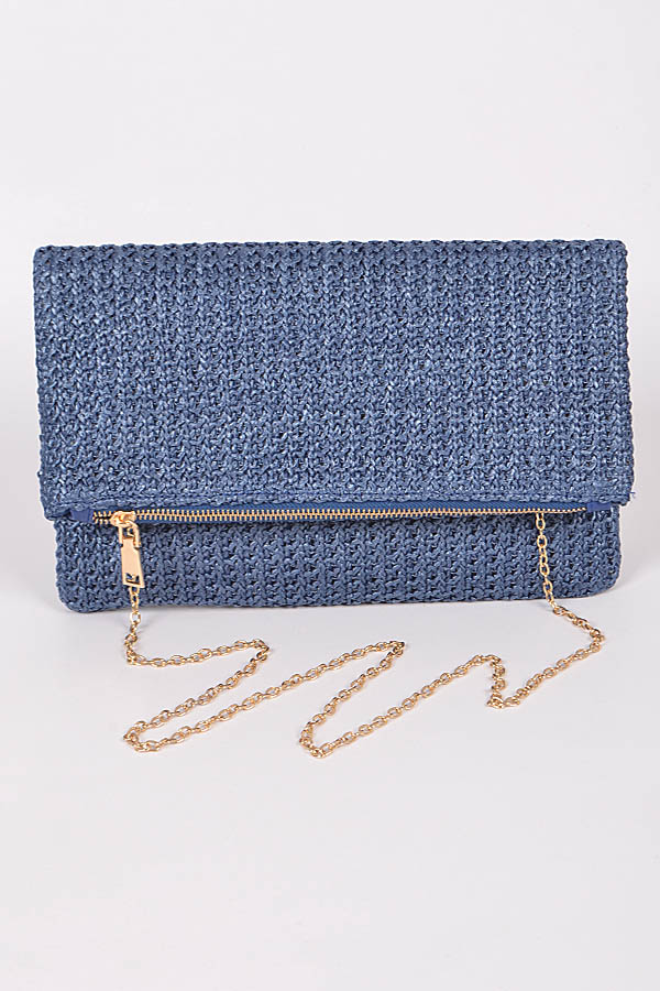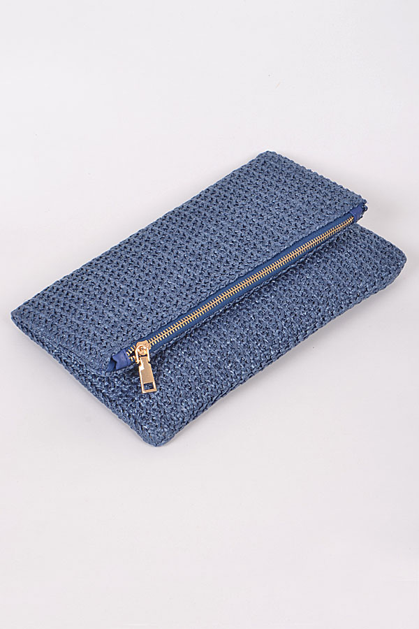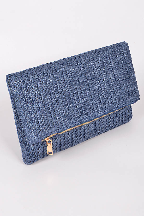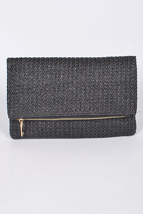 - * Straw Clutch With Zipper Details