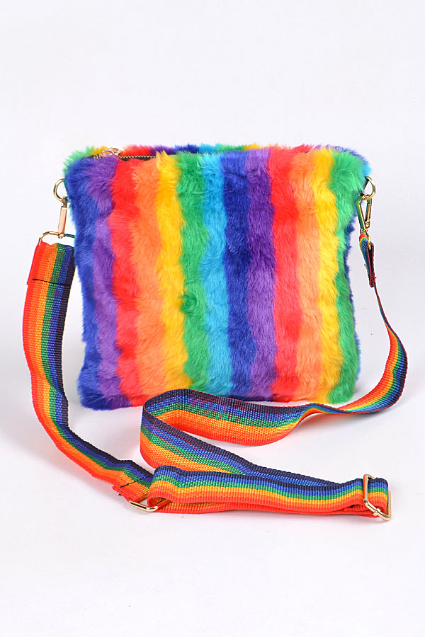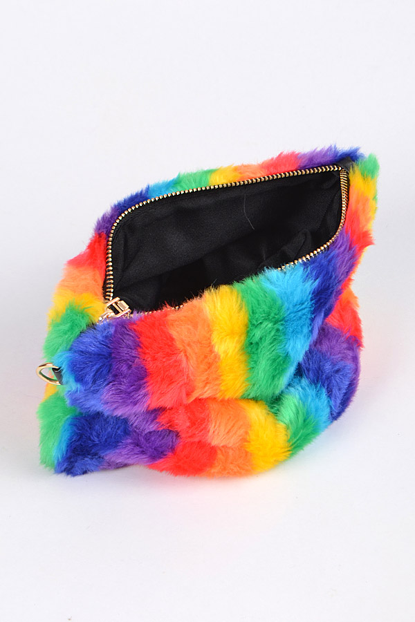 - * Rainbow Faux Fur Clutch