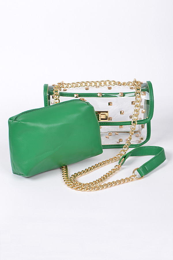 • * Studded Clear Clutch With Make Up Pouch