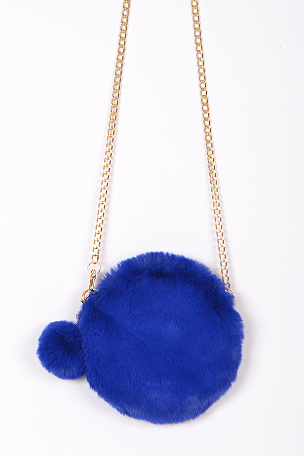 - * Circle Faux Fur Clutch With Chain Details