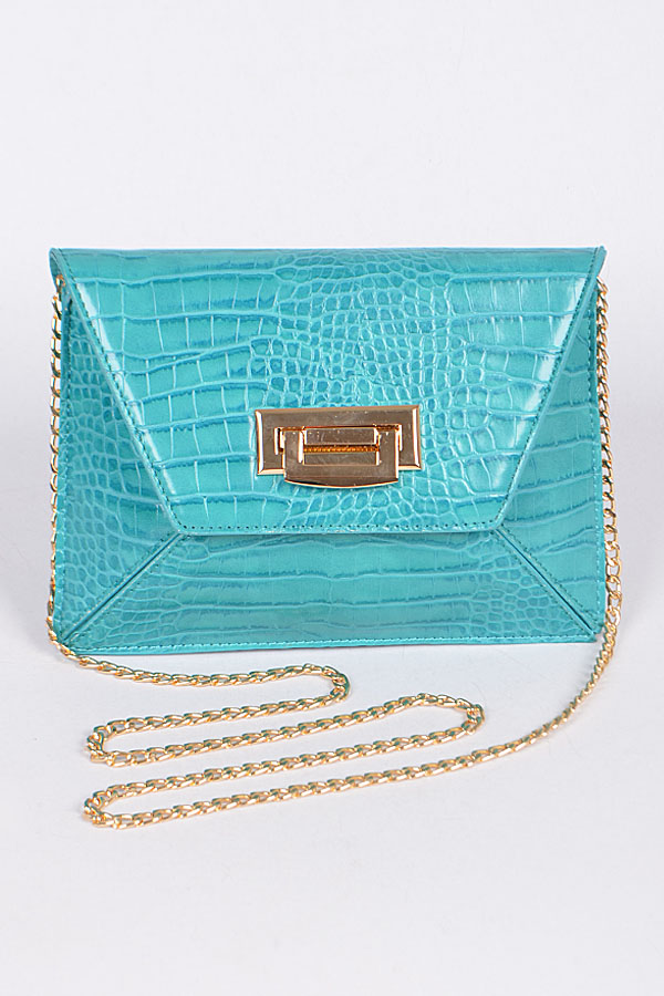- * Faux Crocodile Skin Clutch