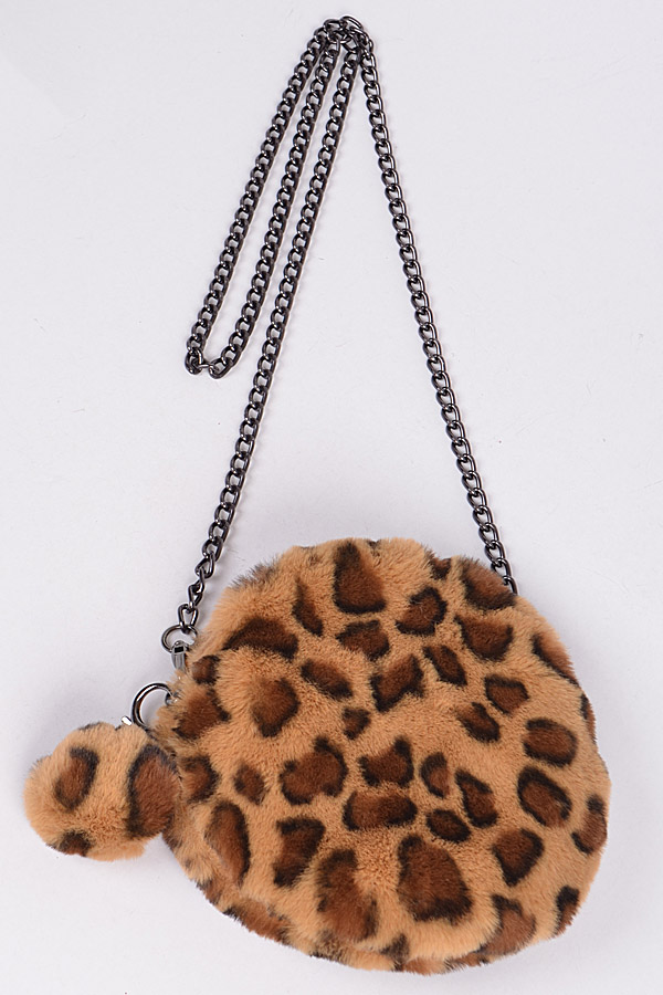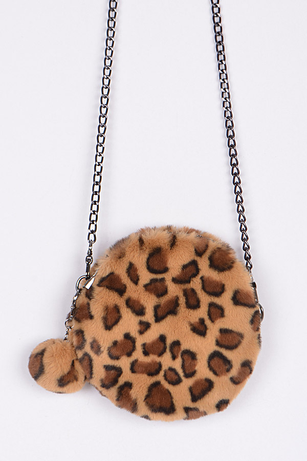 - * Circle Leopard Faux Fur Clutch