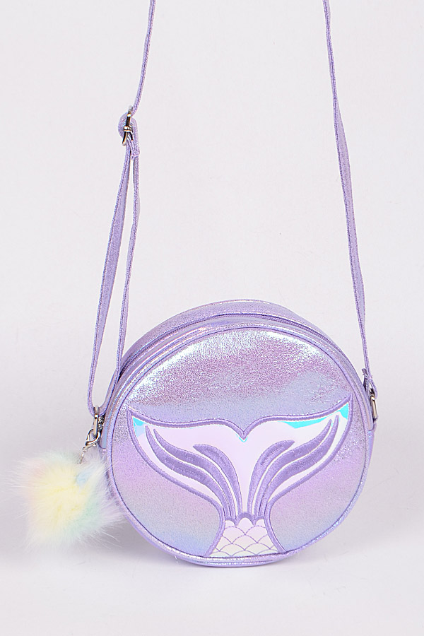 - * Circle Mermaid Sparkling Clutch With Puff Ball