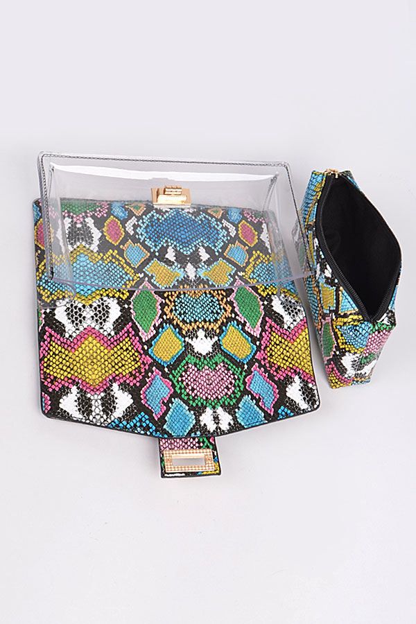 - * Multicolor Melt Envelop Clutch with Clear PVC