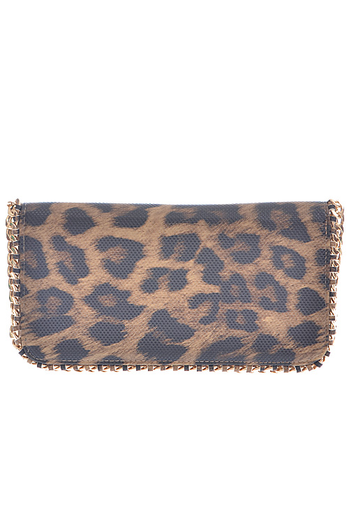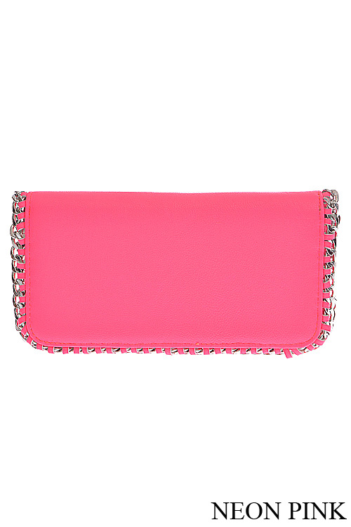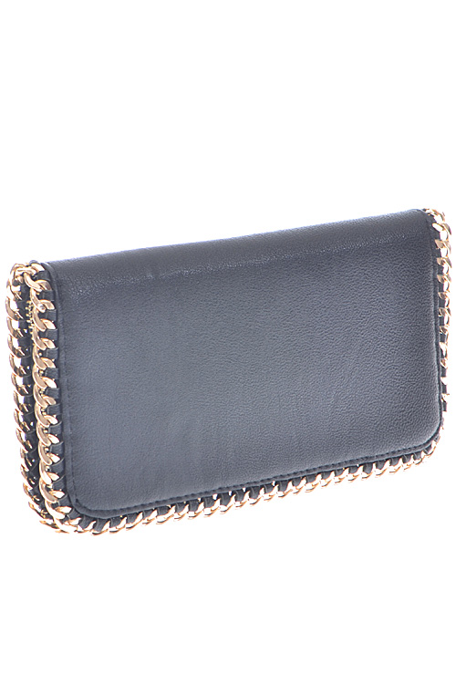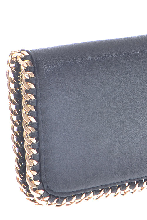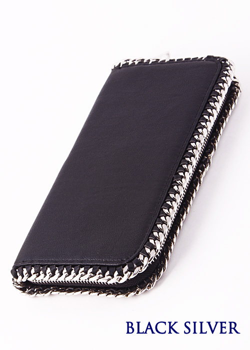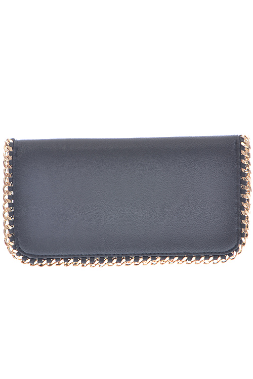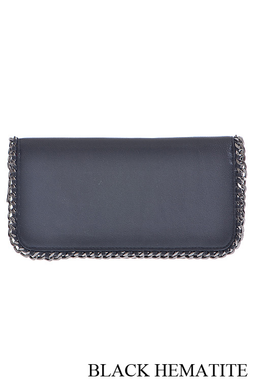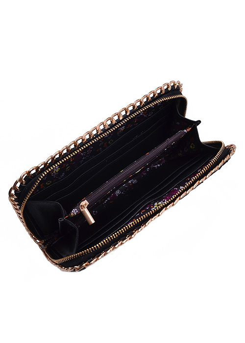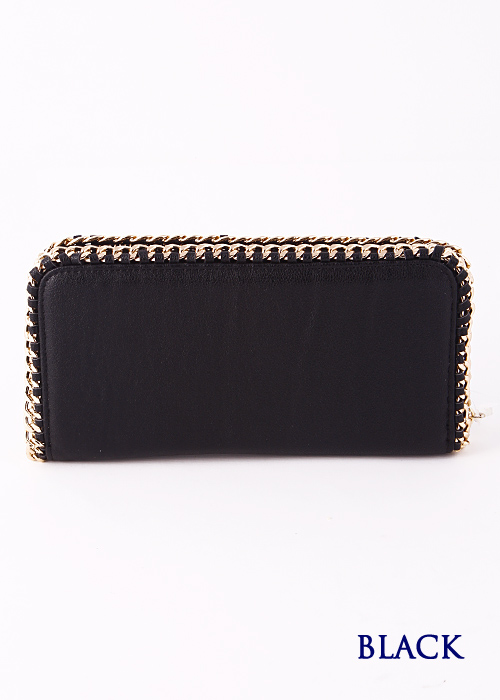 - * Chain Surrounded Zipper Detailed Wallet * 8W*4H*1D * Polyurethane, mixed metal