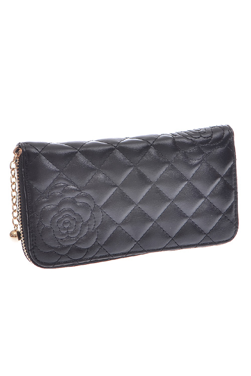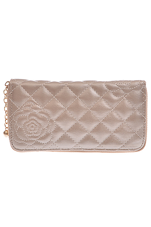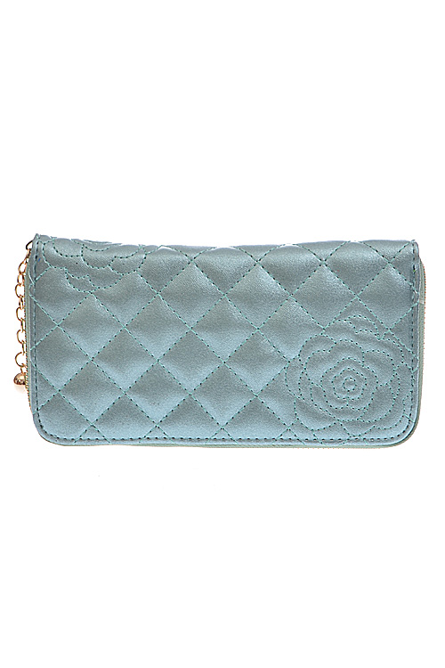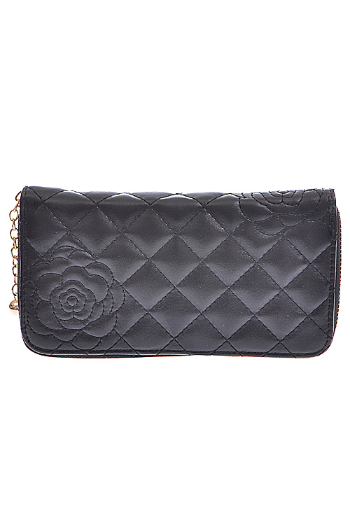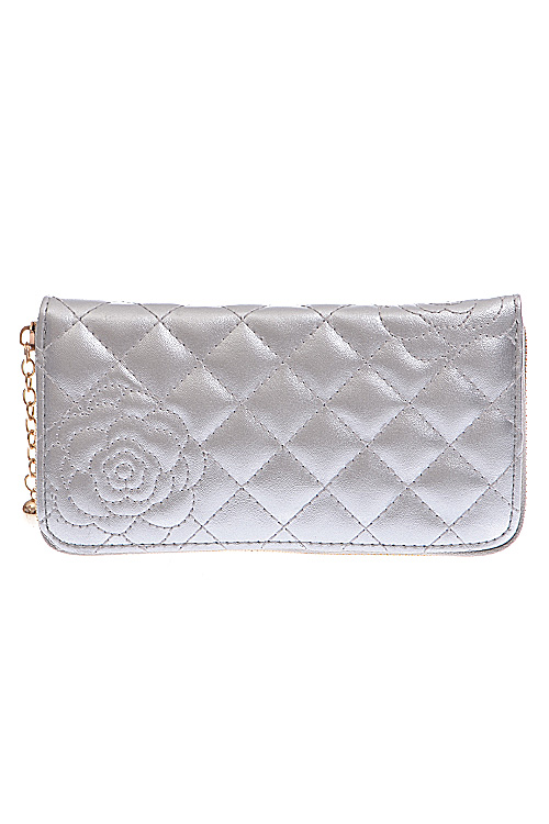 • * Rose Detail Zipper Wallet * 7.5W*4H*1D * Polyurethane, mixed metal