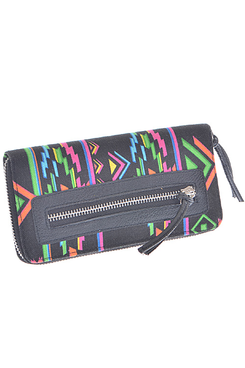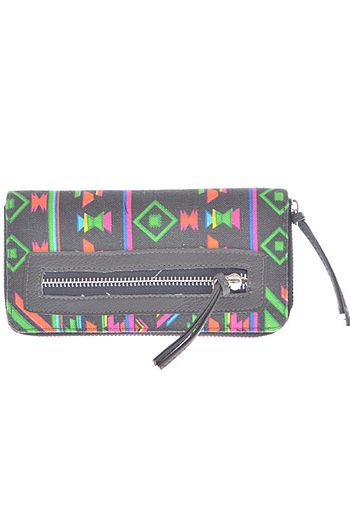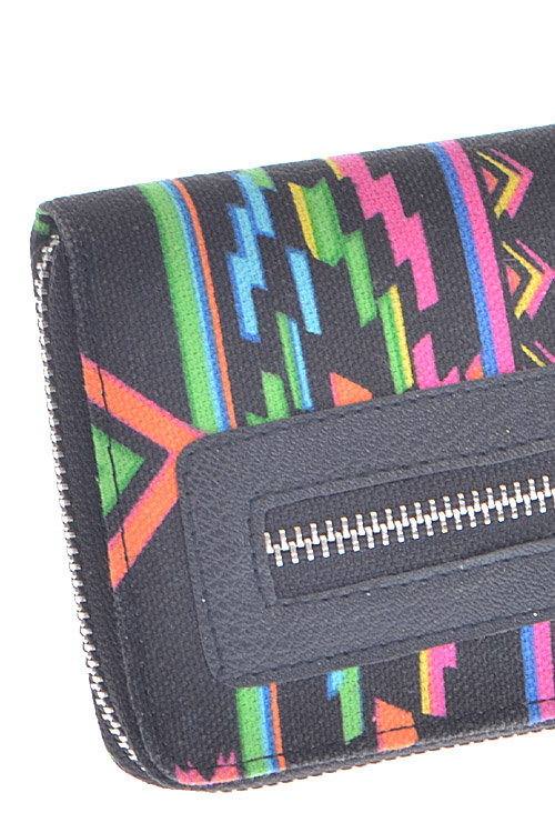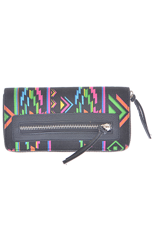 • * Neon Aztec Printed Zipper Wallet * 8W*4H*1D * Polyurethane