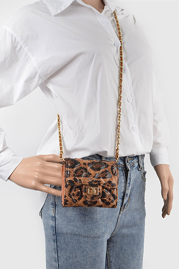 - * Quilted Leo Cross Body Small Wallet