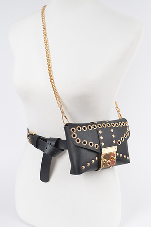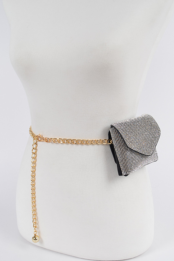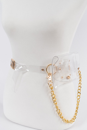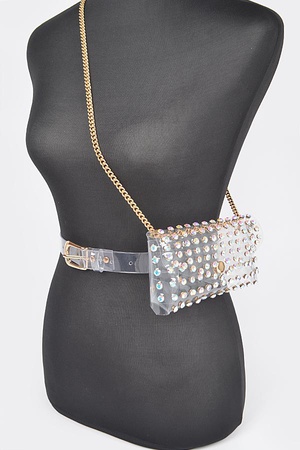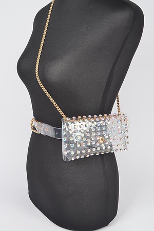 Rhinestone Clear Plus Size Belt Bag W/Chain