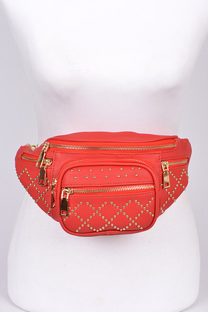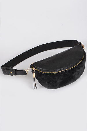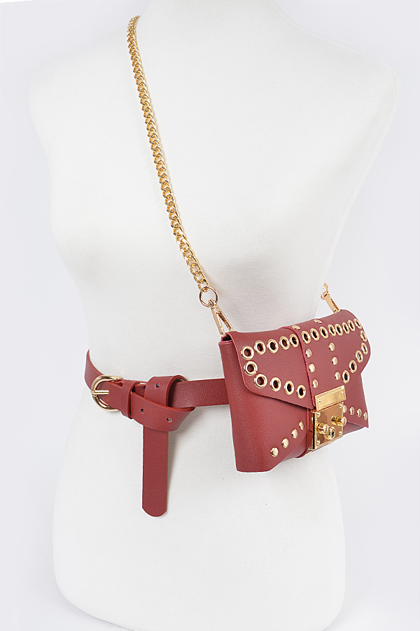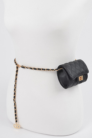 Faux Leather Quilted Flower Belt Bag w/Shoulder Chain