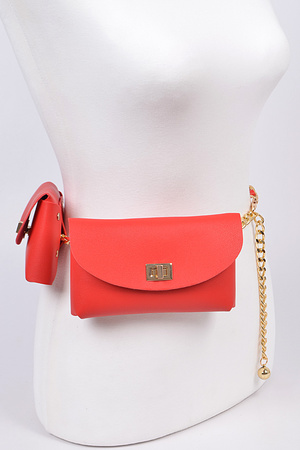 Single Button Flip Style Shoulder Chain Fanny Pack.