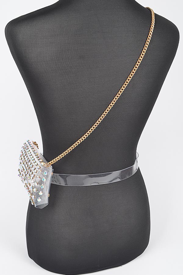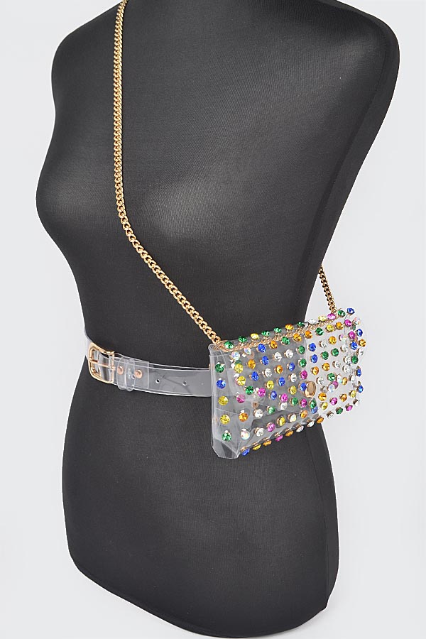 - * Rhinestone Clear Plus Size Belt Bag W/Chain