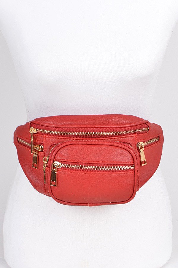 • * Plain Fanny Pack With Zipper and Chain Details