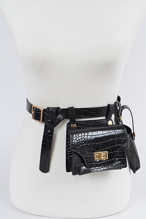 - * Faux Leather Quilted Flower Belt Bag w/Shoulder Chain