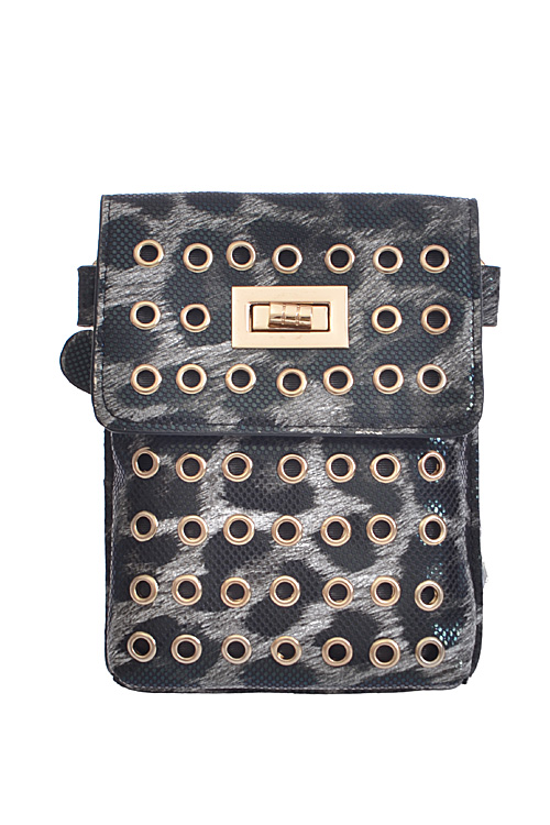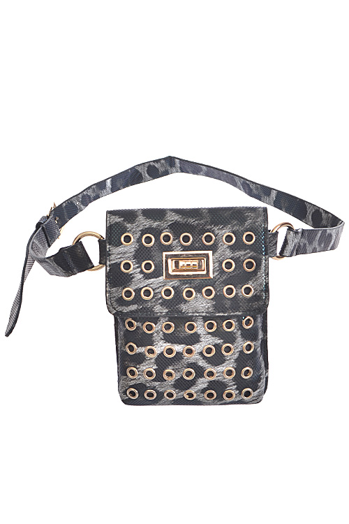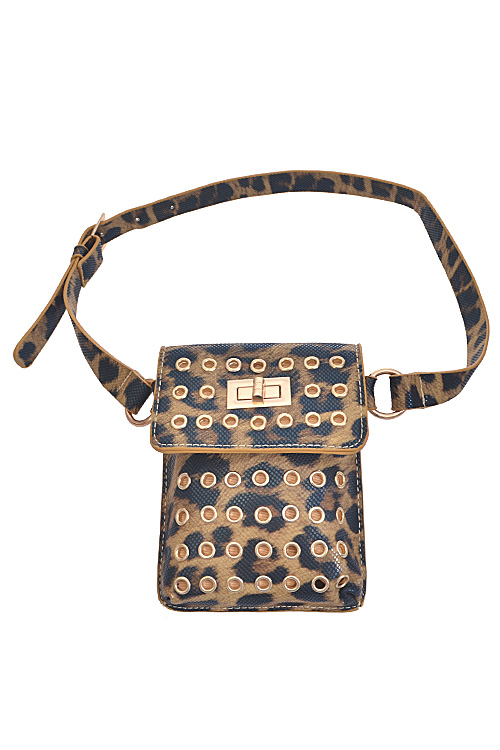 - * Circle Cutout Leopard Fanny Pack * 5W*6.5H*1D * Polyurethane, mixed metal