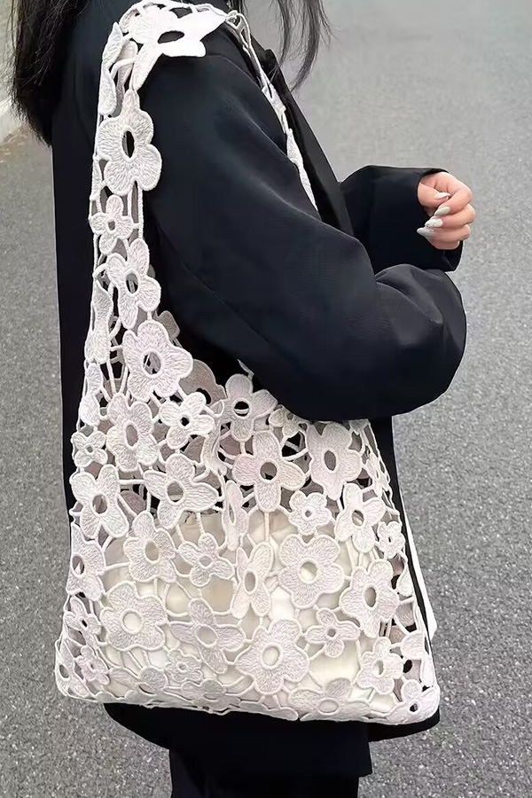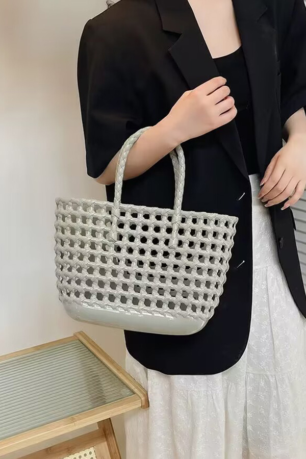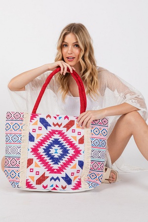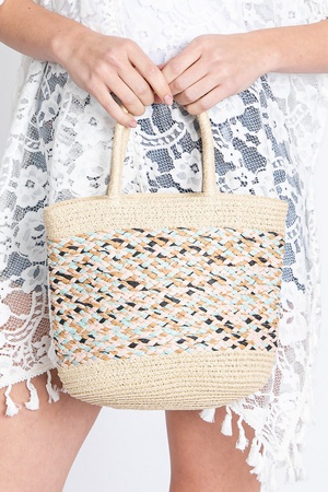 STRIPED PATTERN DOTTED LINE DETAIL STRAW BAG.