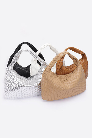 Faux Straw Handmade Metallic Stripe Wooden Handle Bag