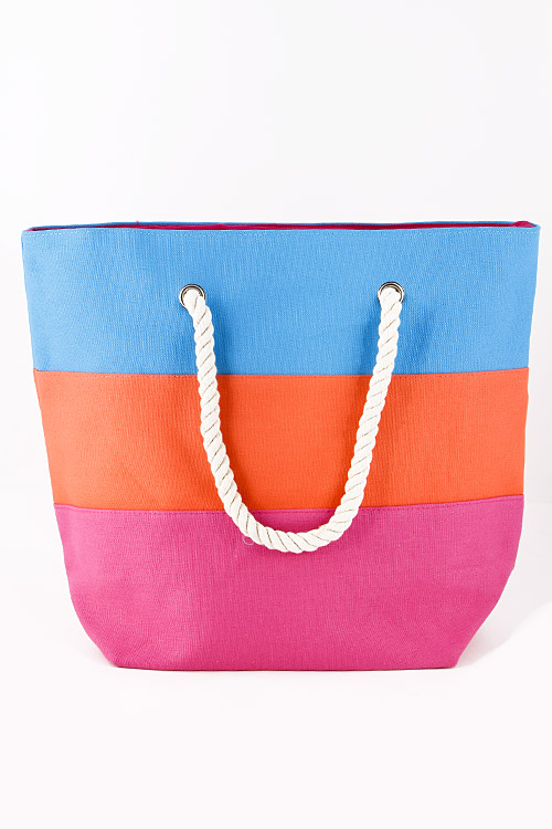 • * Three Color Block Striped Handbag 5ACG * 19 x 14 7" approx.