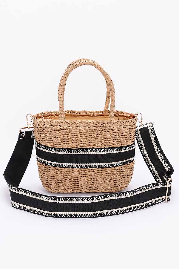 - * Introducing the "Faux Straw Small Tote Bag" – a stylish faux straw bag that effortlessly combines elegance and practicality. With its striking black and white stripes, this small tote from H&D Accessories is perfect for any occasion, whether you're heading to the beach or running errands in the city. Elevate your accessory game with this must-have piece!