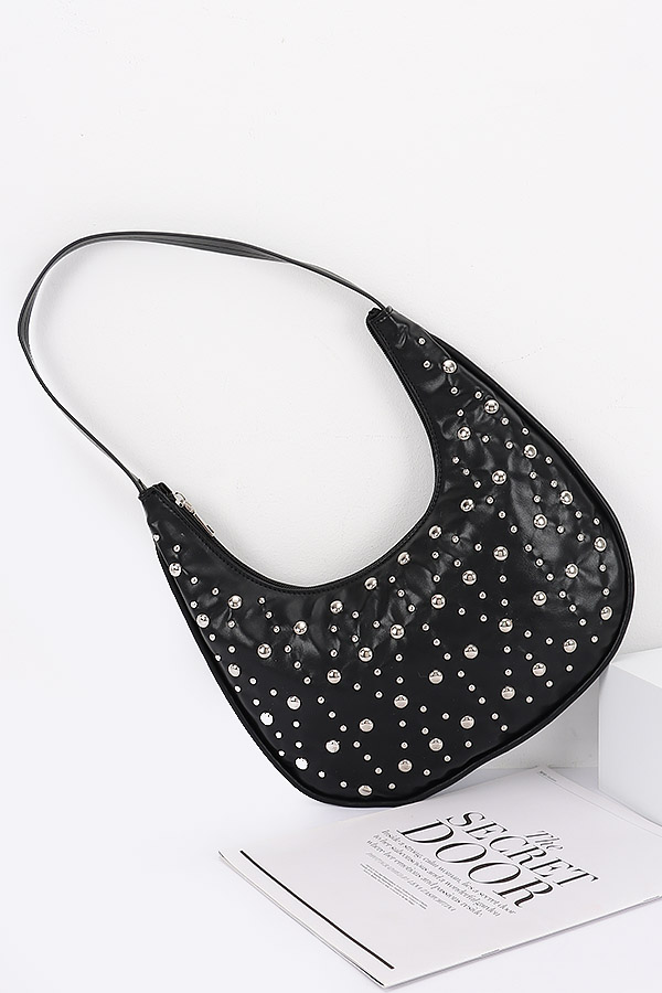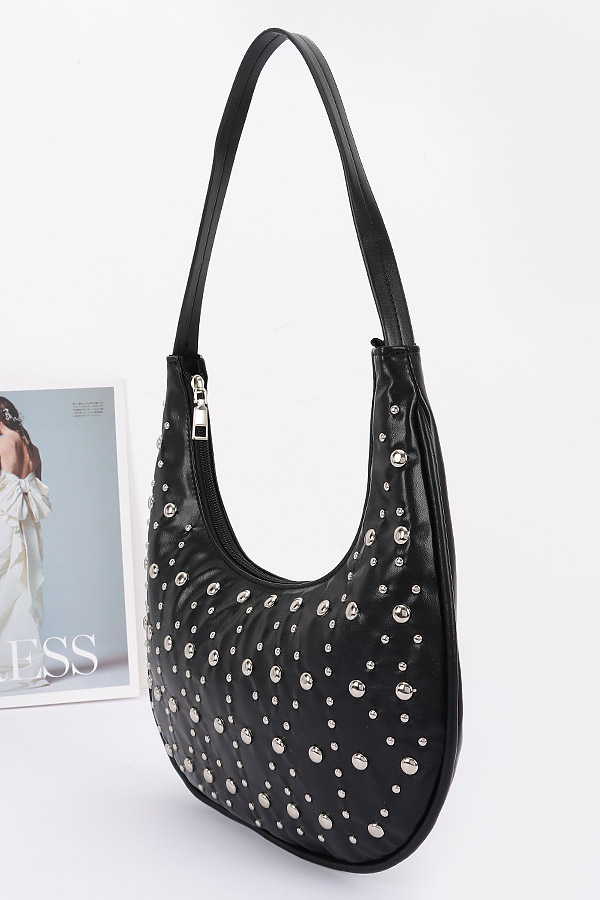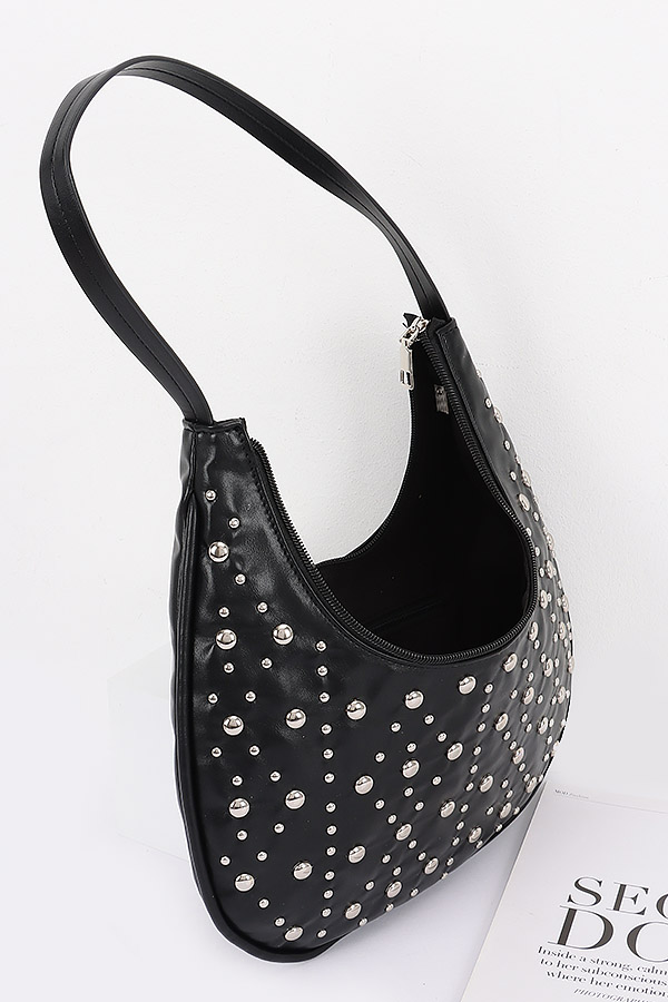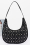 • * Faux Leather Metal Studded Hobo Bag