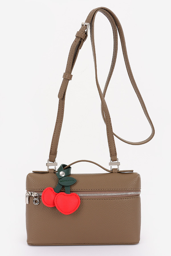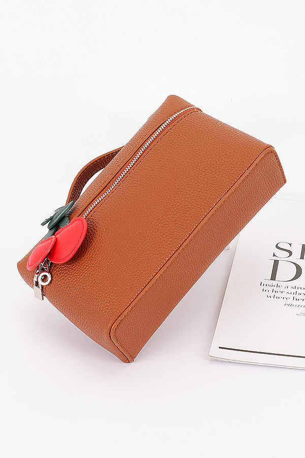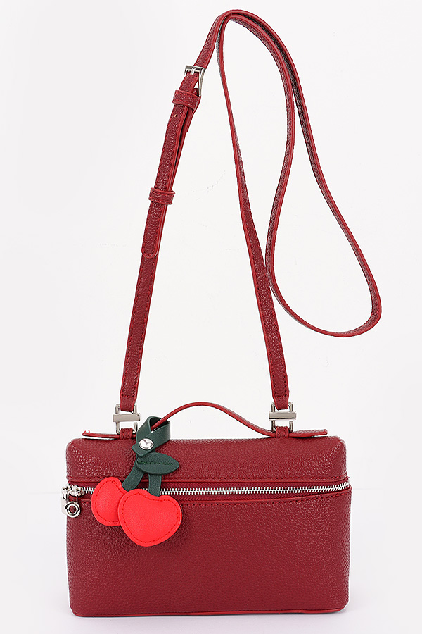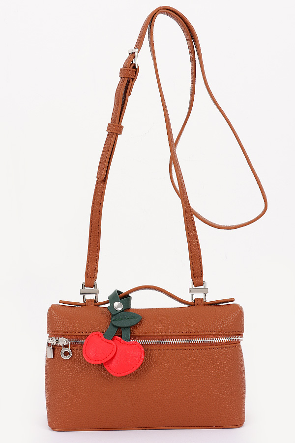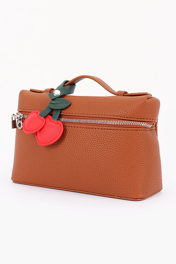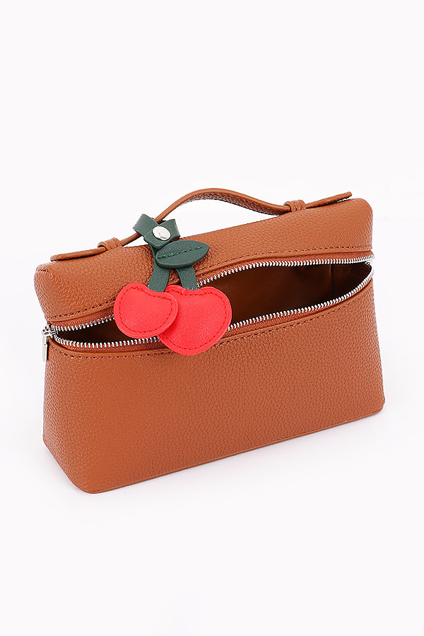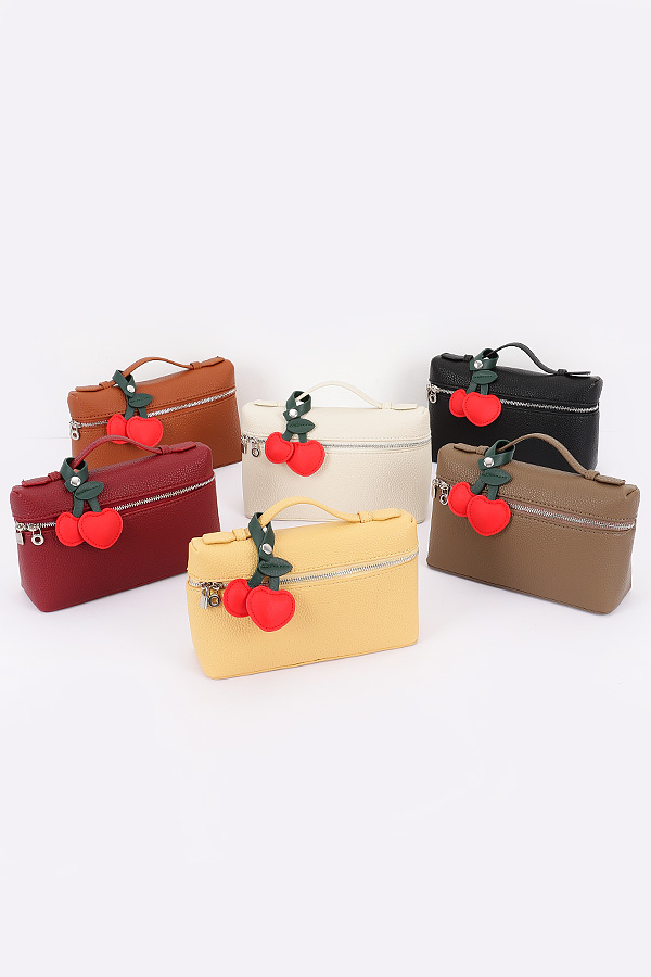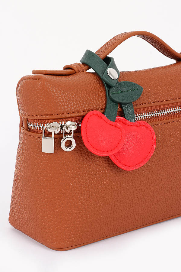 - * This is a Faux Leather Top Handle Bag. It has an adjustable shoulder strap and a top handle for versatile carrying. A cute cherry - shaped decoration with green leaves is attached to it. There is a zippered front pocket and a main compartment. From H&D Accessories, it features a textured surface and metal hardware, combining practicality and style.