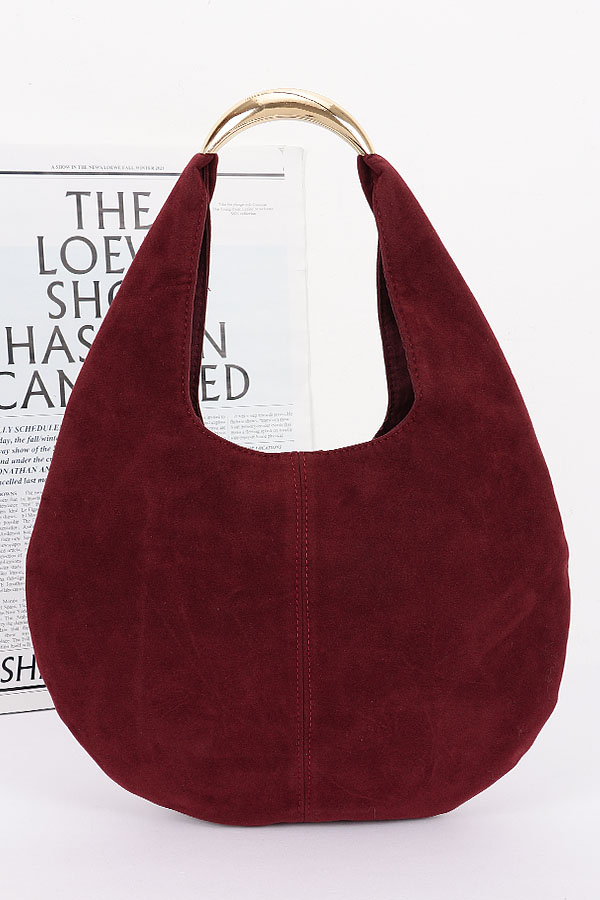 - * Faux Suede Leather Hobo Bag