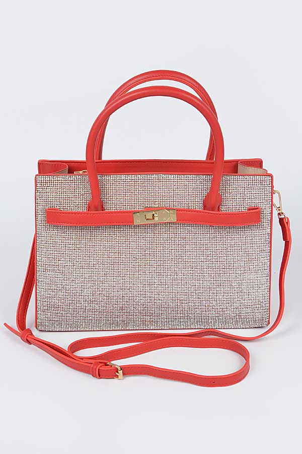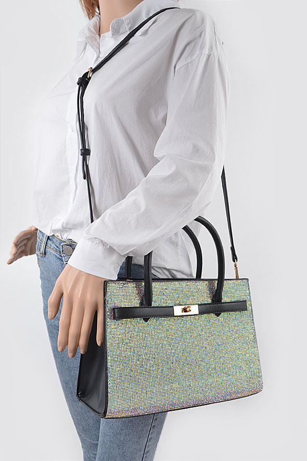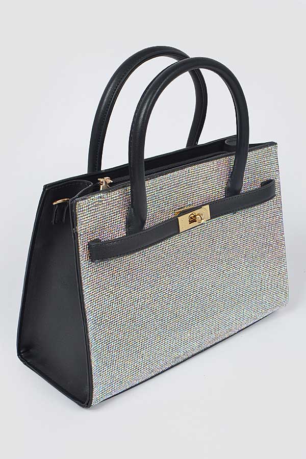 - * Rhinestone Top Handle Satchel Bag