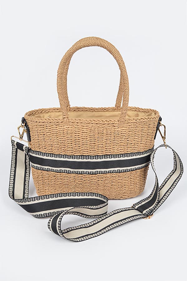 - * Faux Straw Tote Bag W/Strap