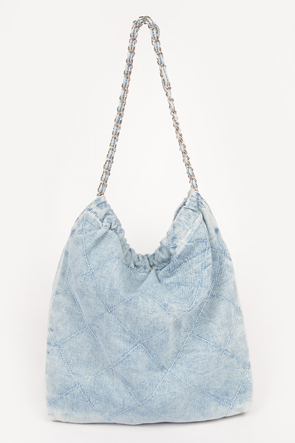 - * Quilted Washed Denim Chain Bag
