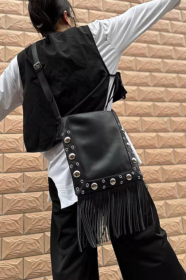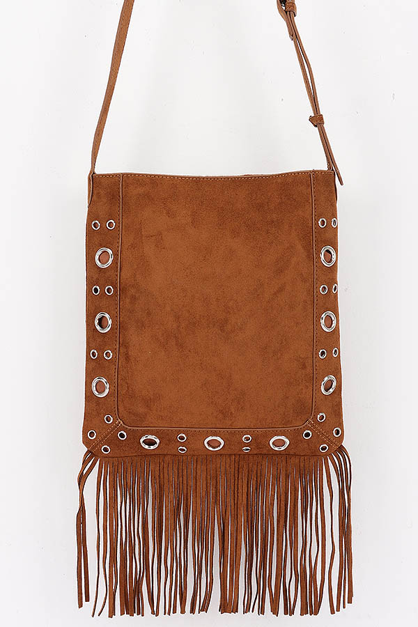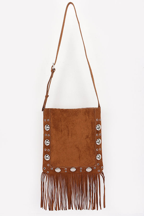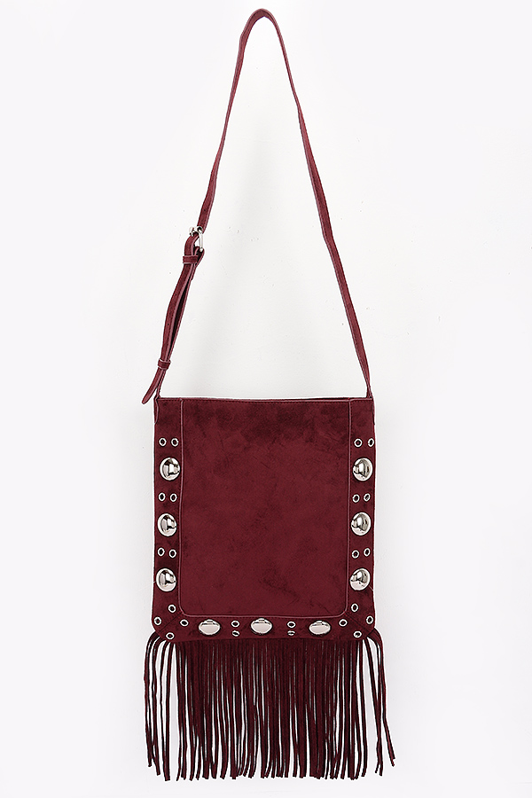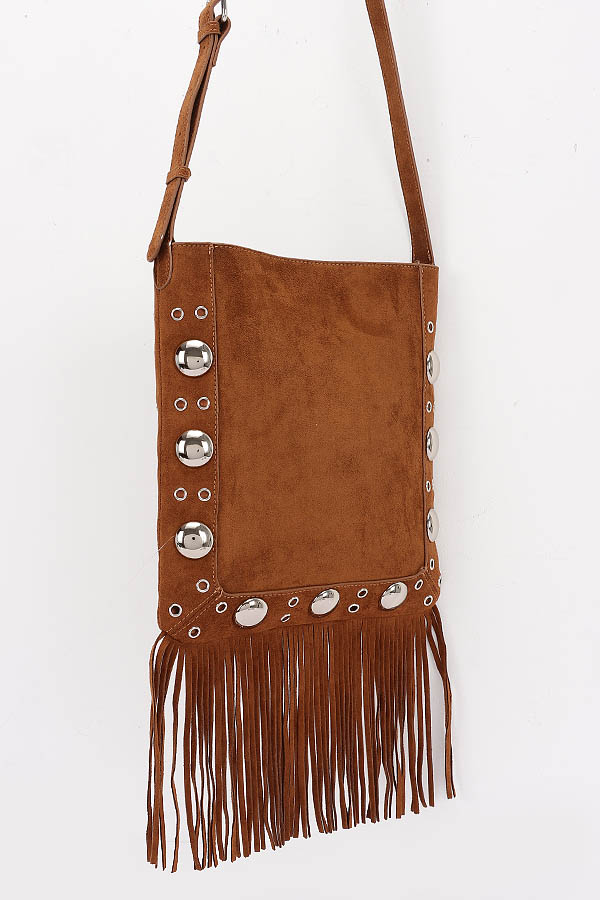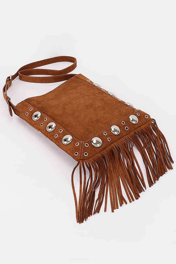 - * Faux Suede Metal Studded Fringe Bag