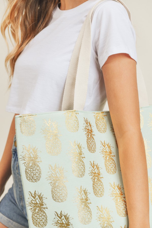 - * GOLD FOIL PINEAPPLE BEACH BAG