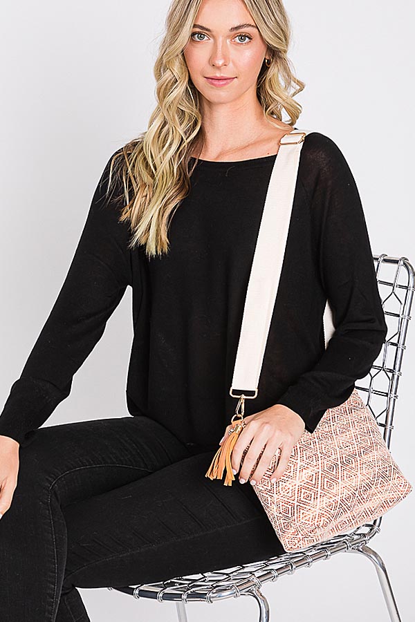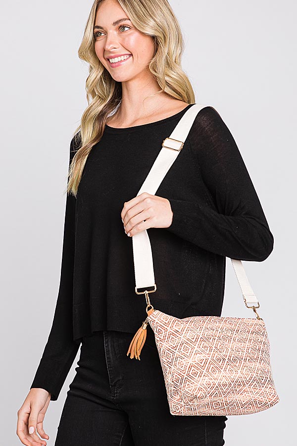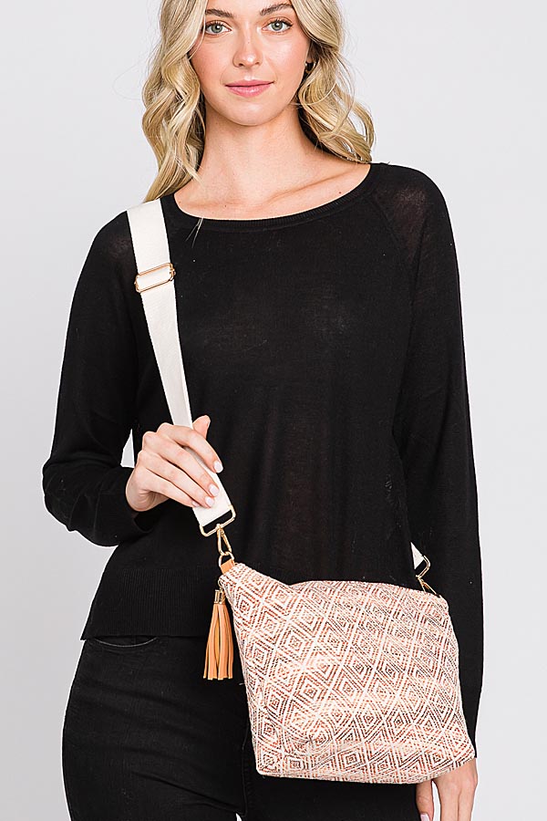 - * AZTEC PATTERN TASSEL CROSSBODY BAG.