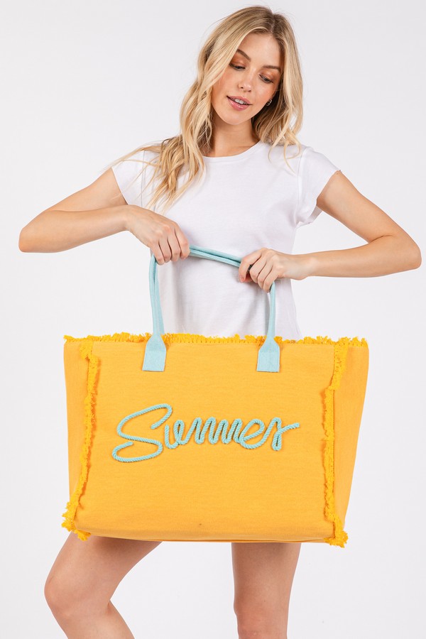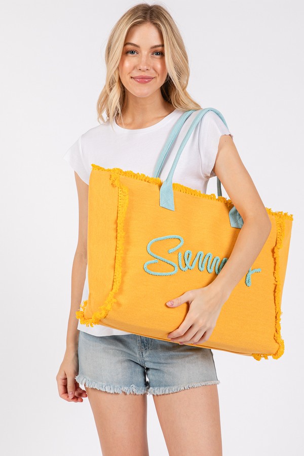 - * SEWN ROPE SUMMER LETTER FRINGE CANVAS BAG.