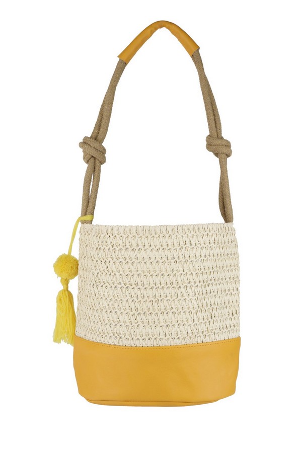 - * PU BOTTOM STRAW BUCKET BAG WITH TASSEL.
