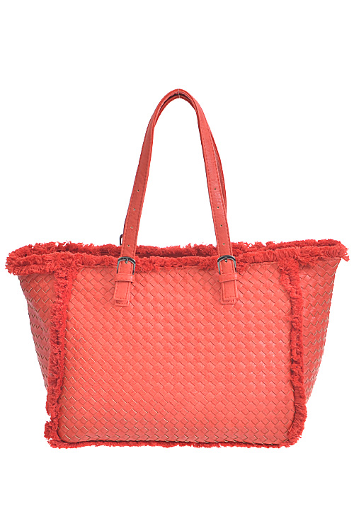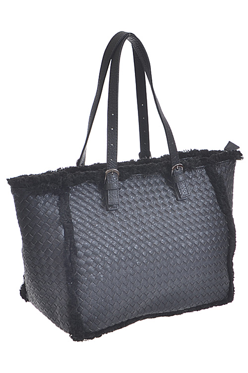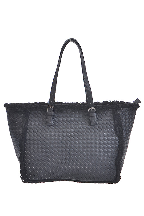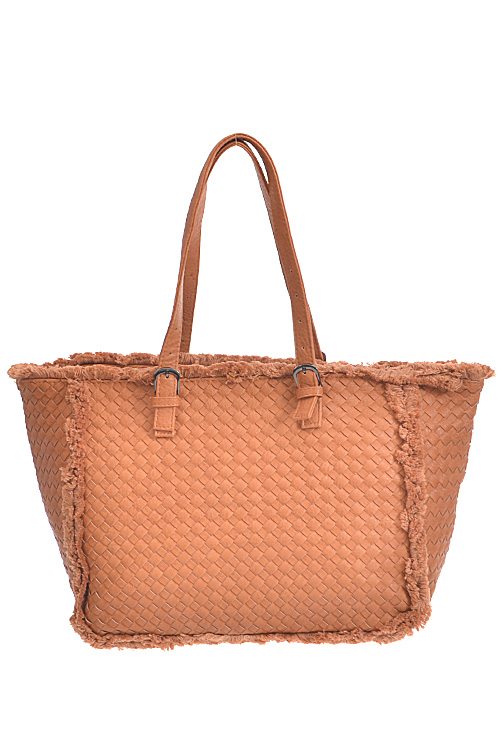 • * Fur Outlined Adjustable Handle Bag * 19W*11H*7D * POLYURETHANE, MIXED MATEL