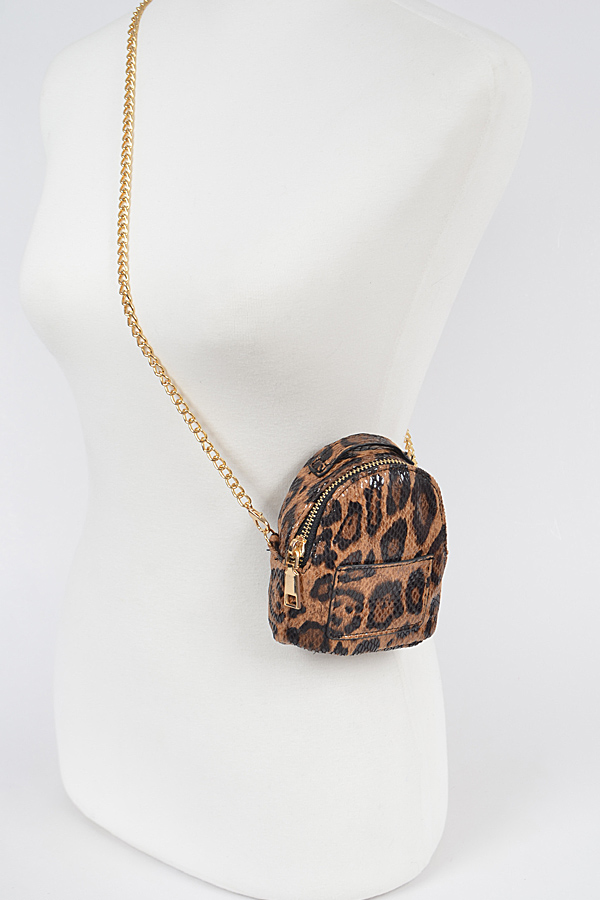 - * Leopard Mini Wrist Bag W/Crossbody Chain
