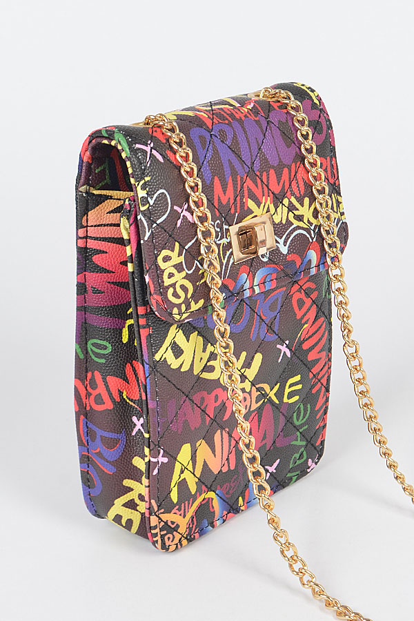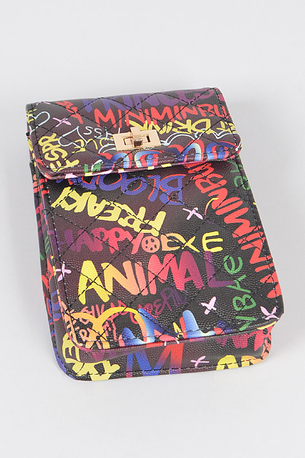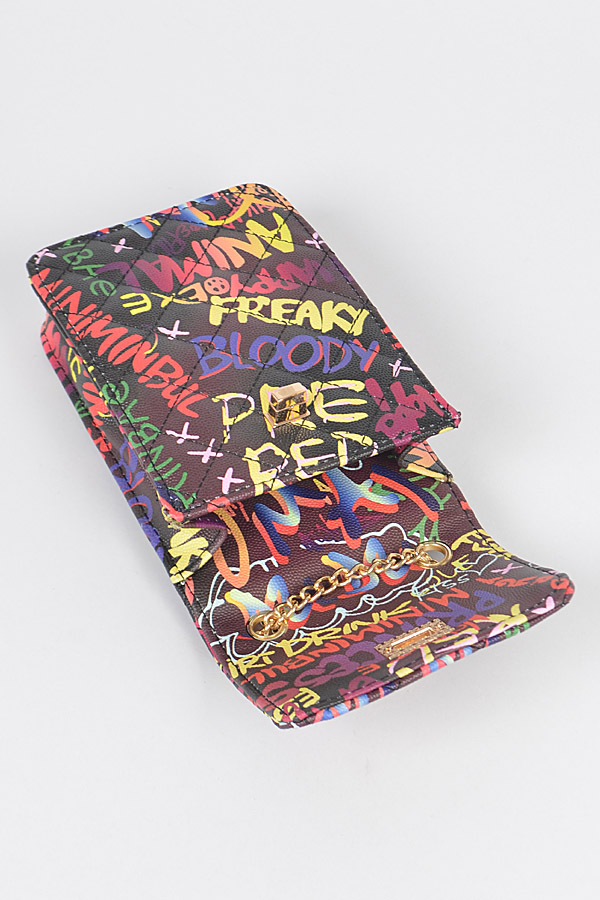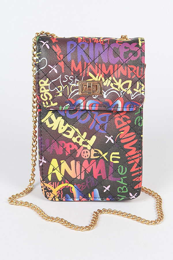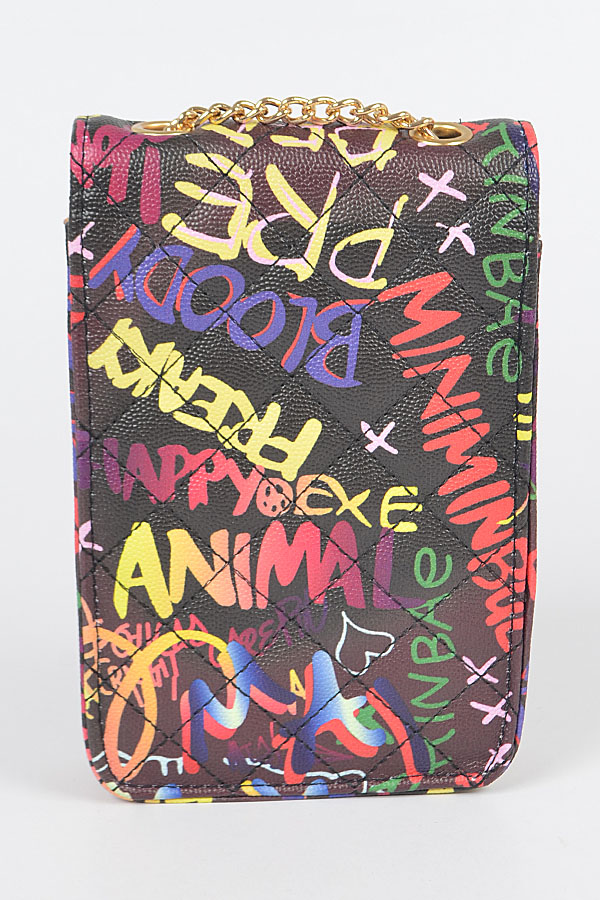 - * Quilted Bk Multi Graffiti Cellphone Bag