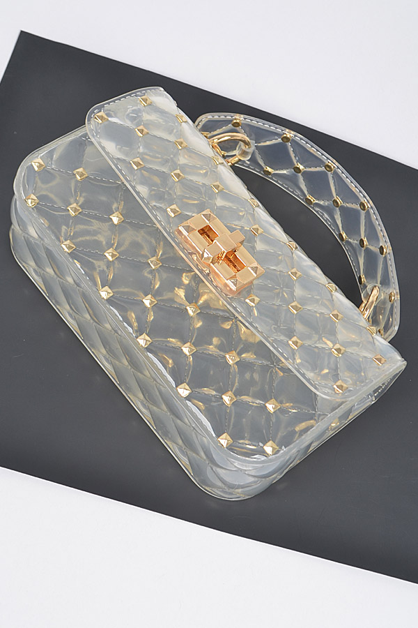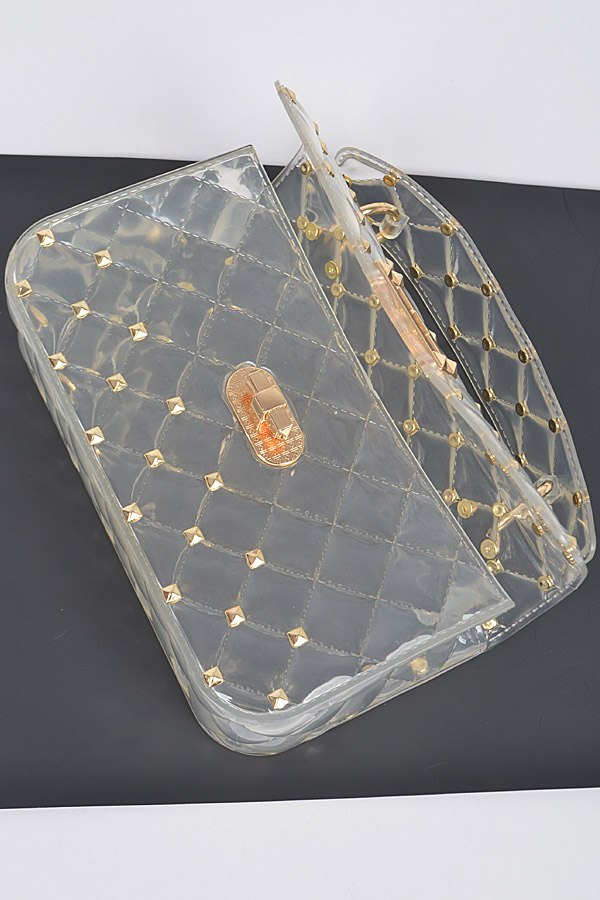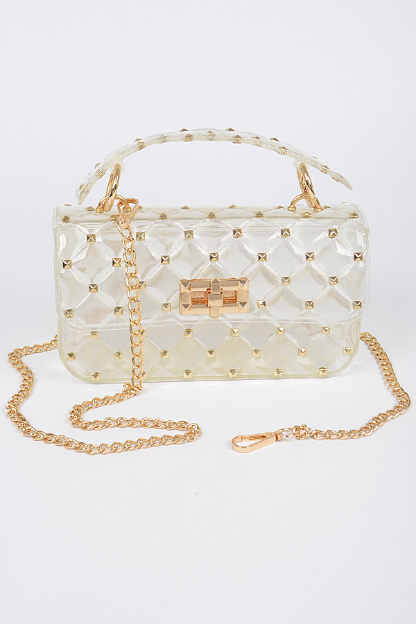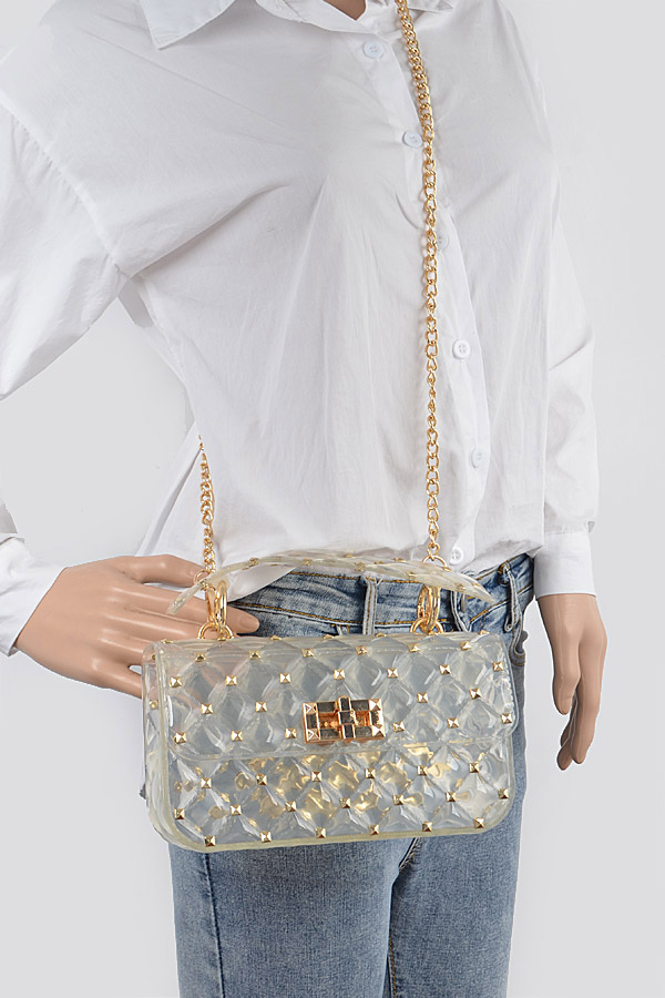 • * Glossy Stud Cross Chain body Clutch