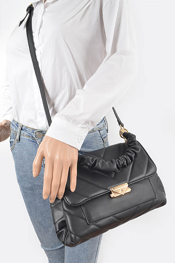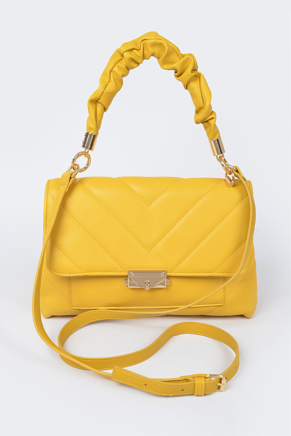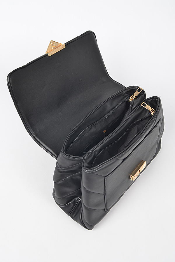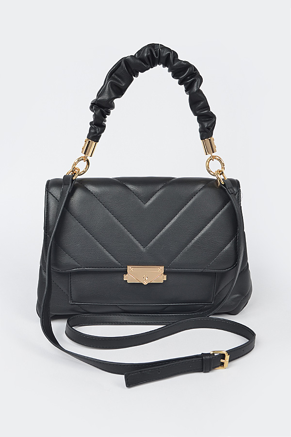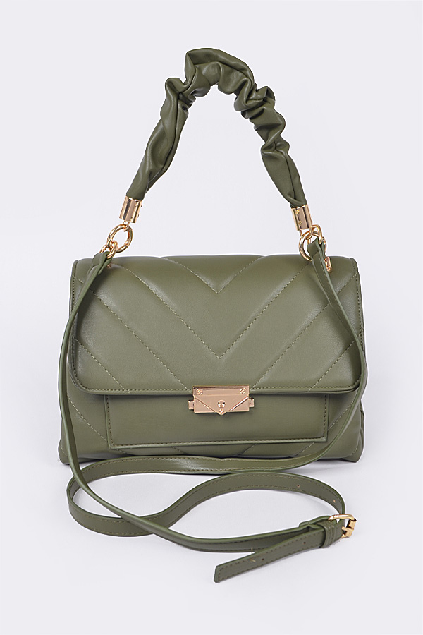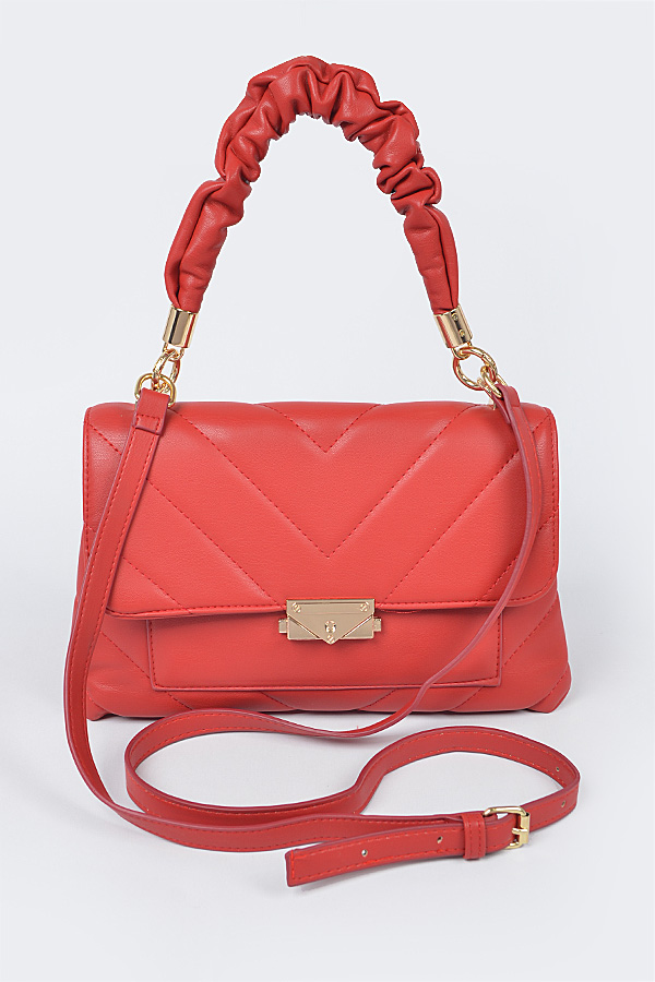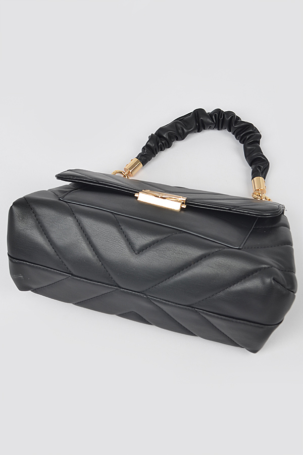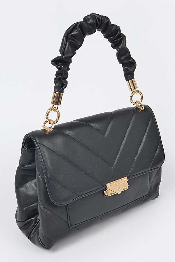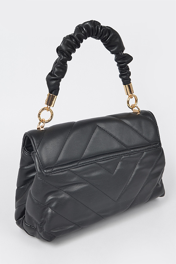 - * Quilted Faux Leather Top Handle Bag W/Chain