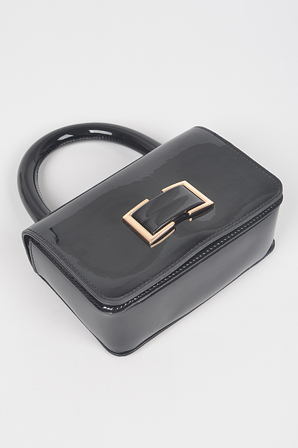 - * Patent Leather Top Handle Clutch
