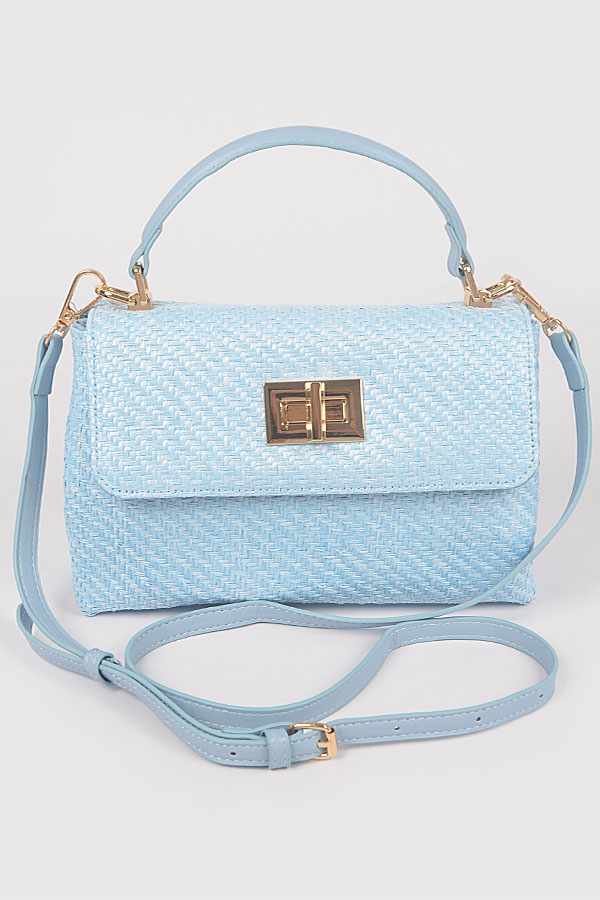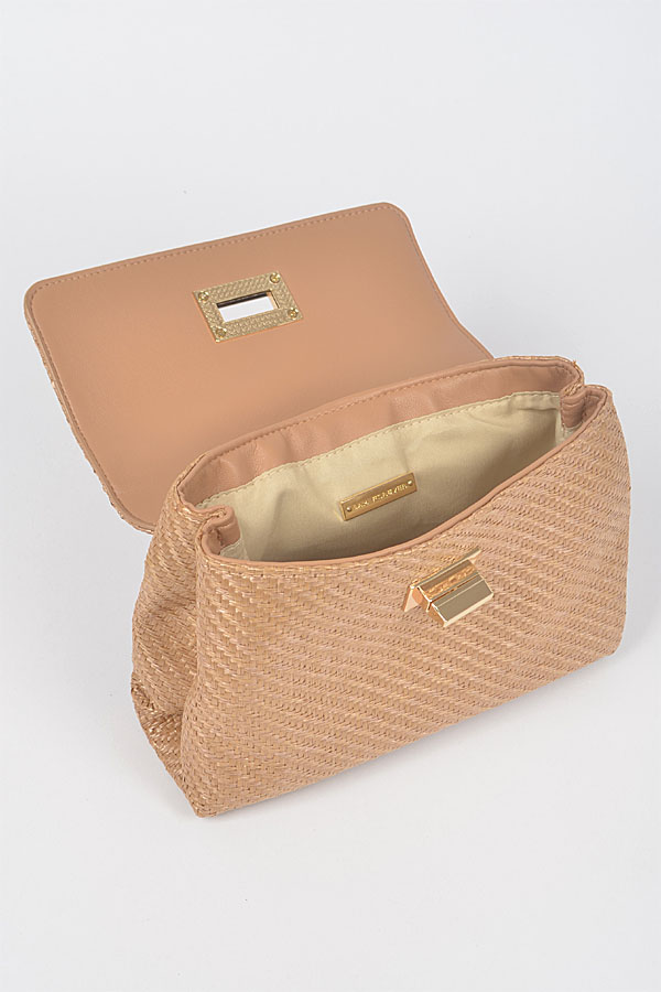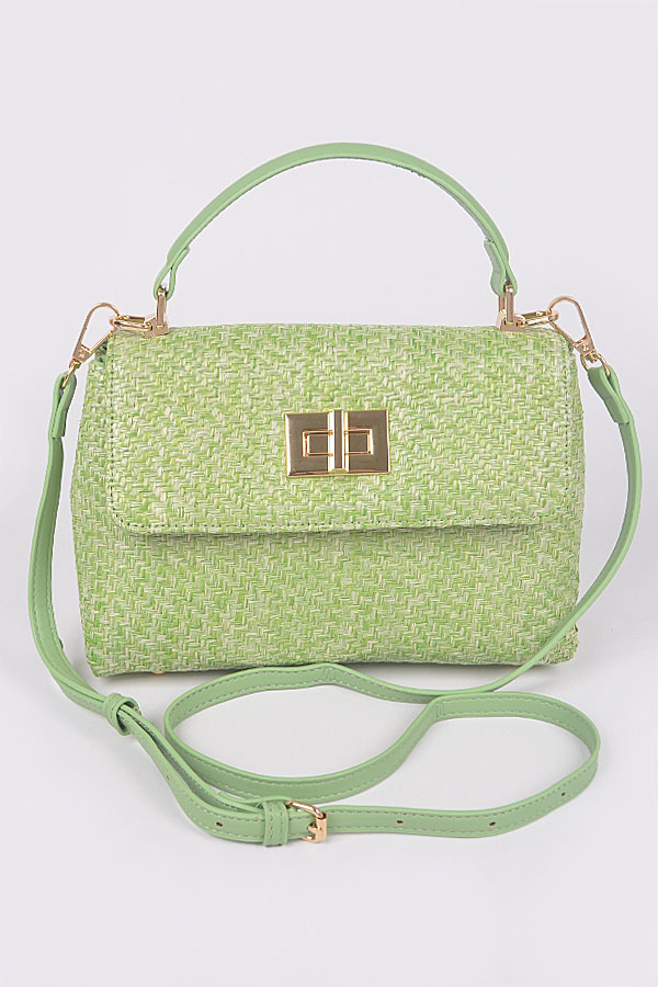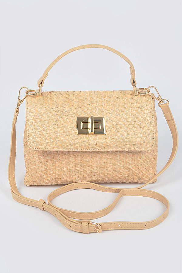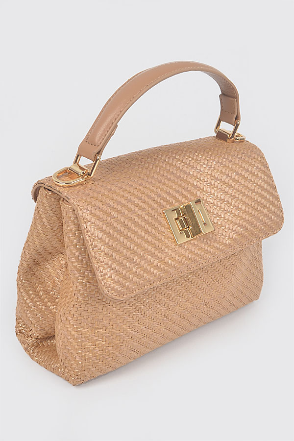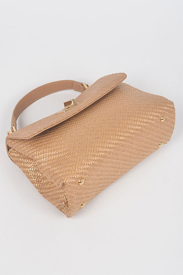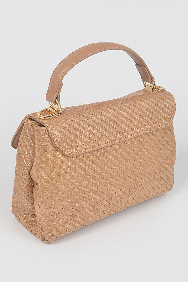 - * Faux Straw Top Handle Flap Bag