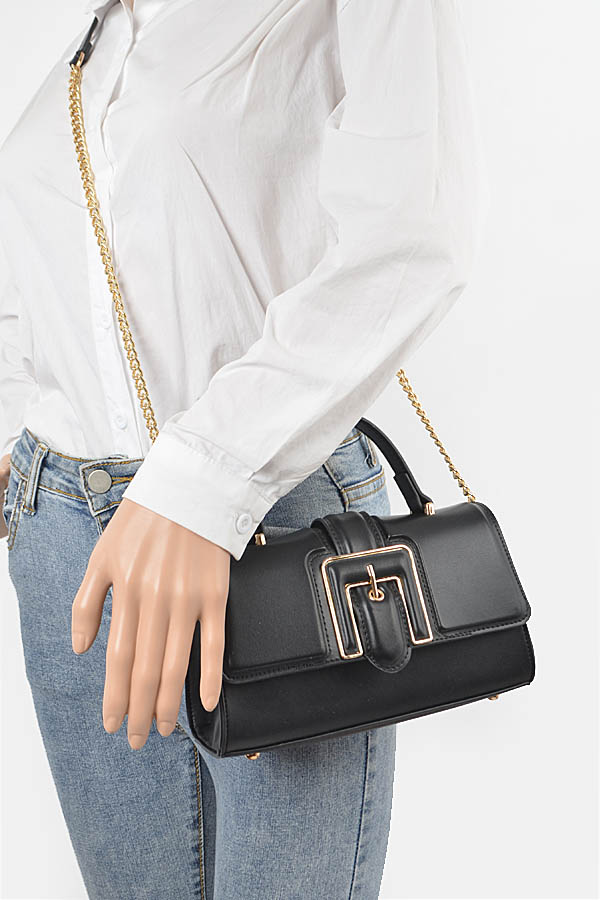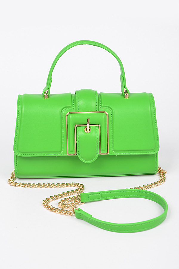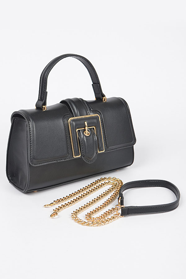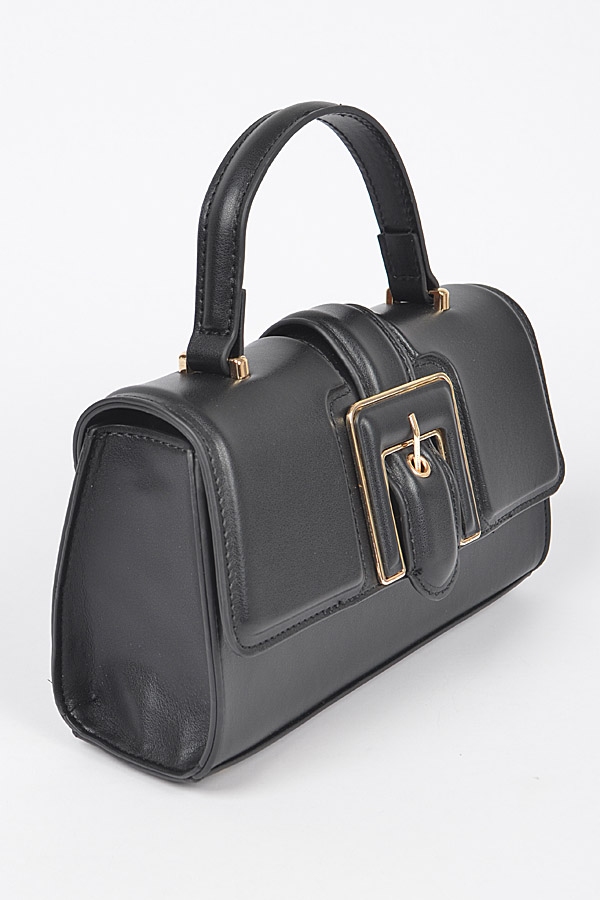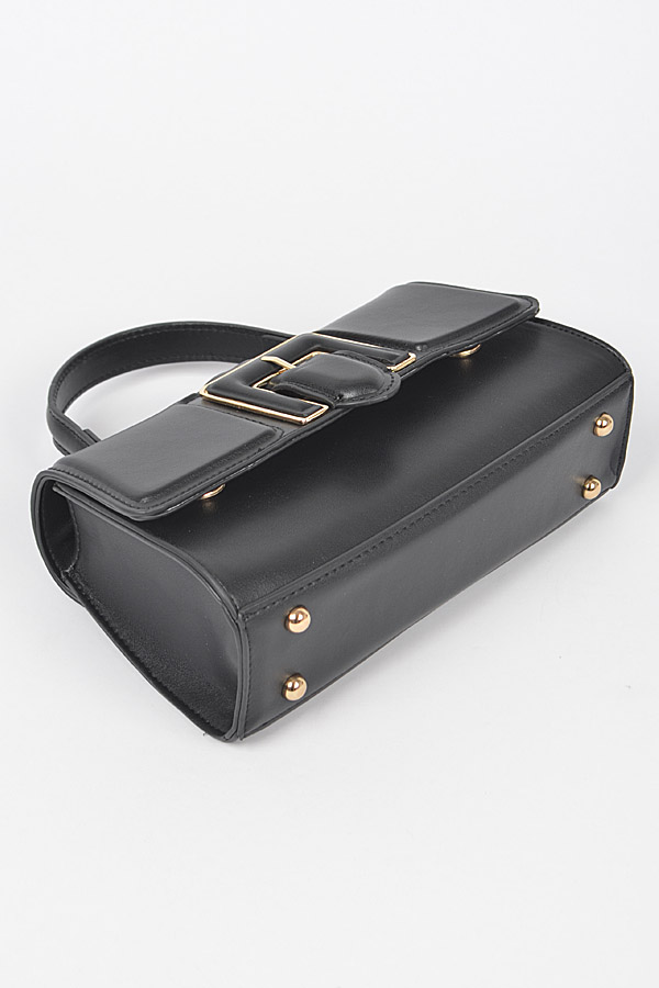 - * Faux Leather Buckle Top Handle Crossbody Bag