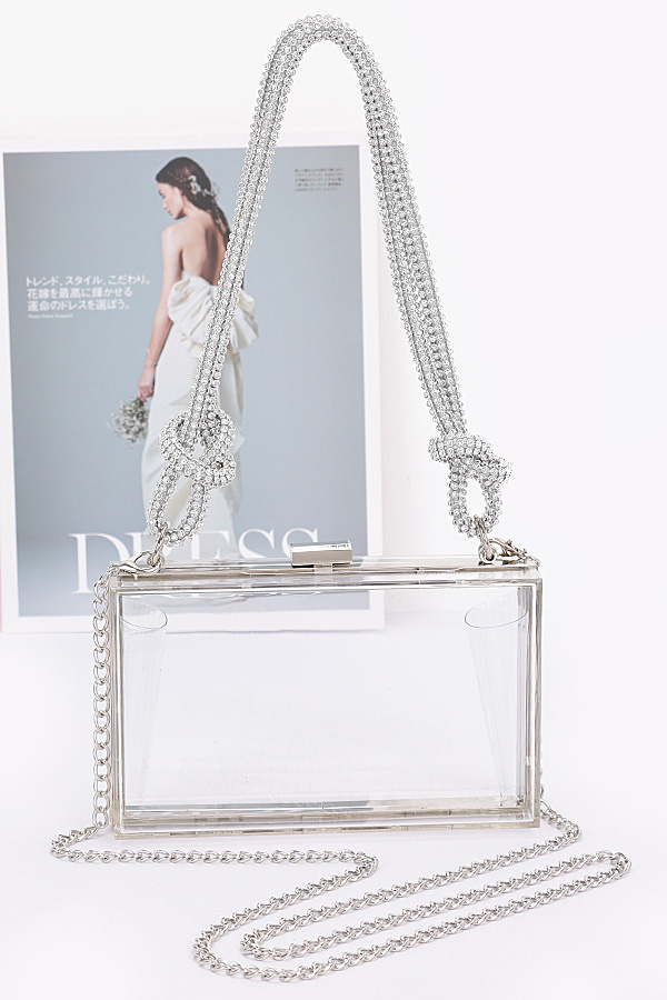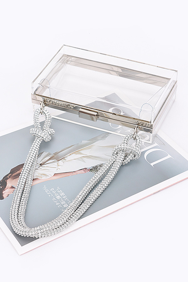 • * Clear Case Clutch W/Rhinestone Handle
