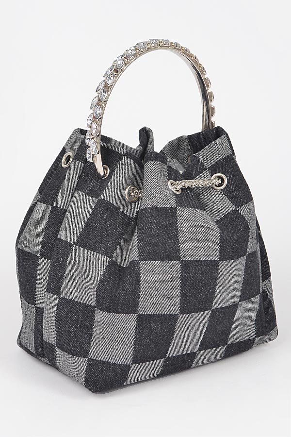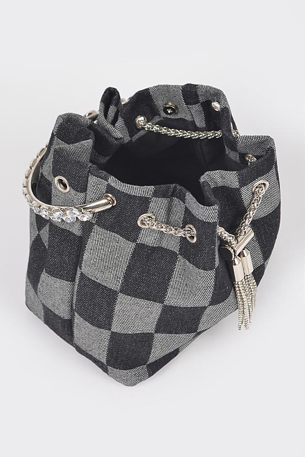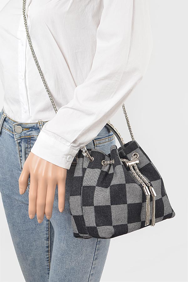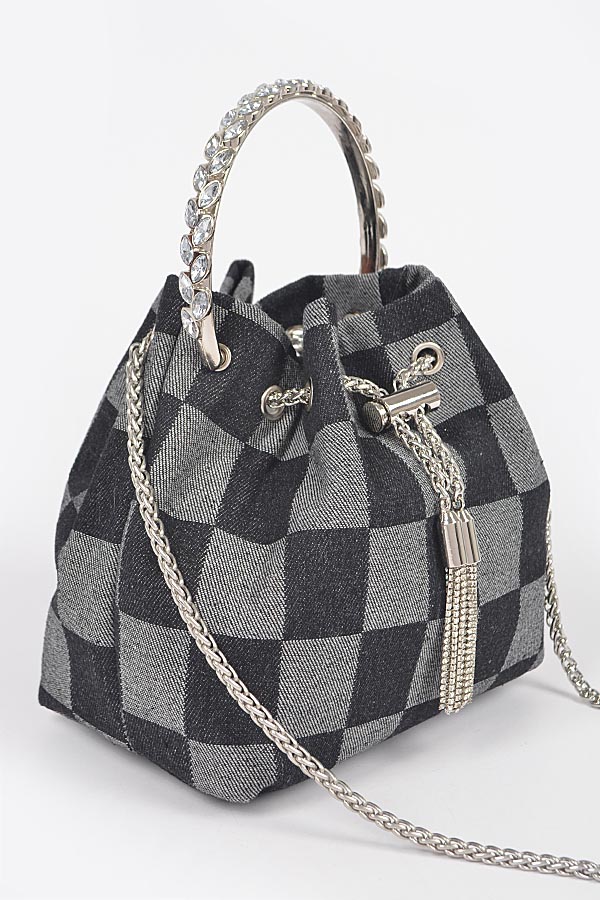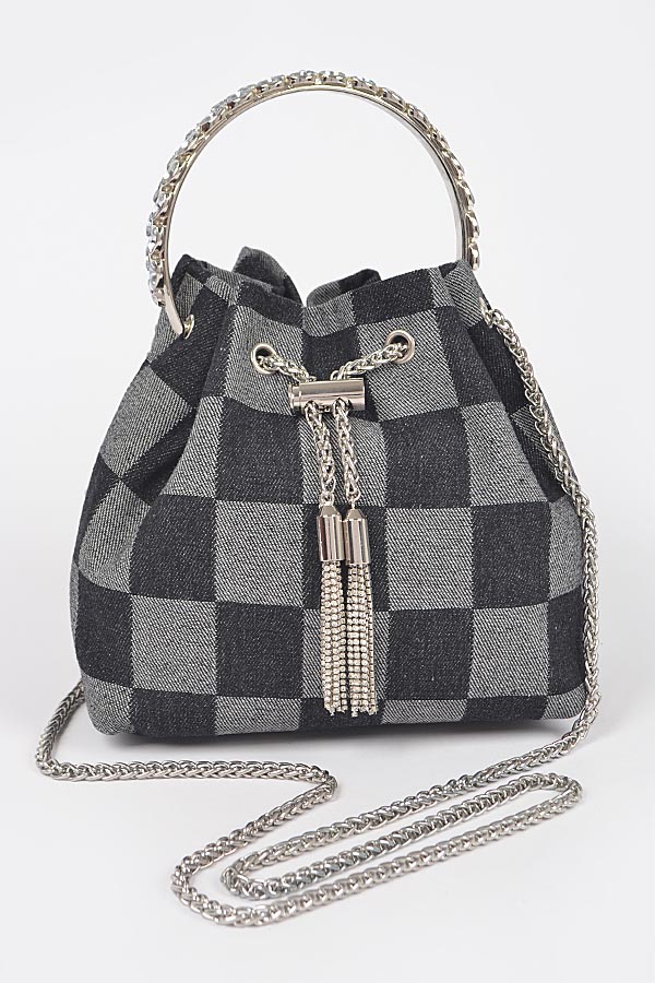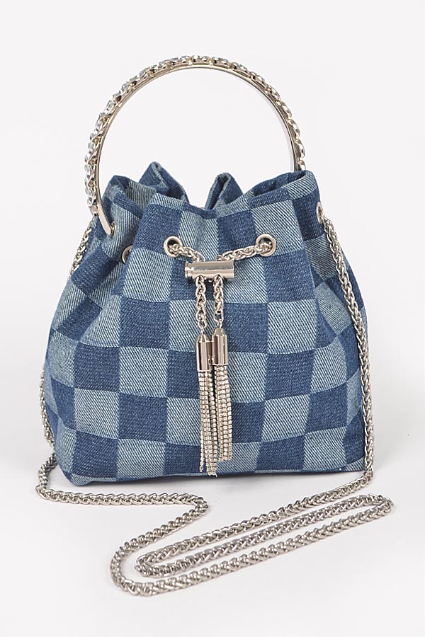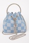 - * Two Tone Denim Bucket Bag W/Metal Handle