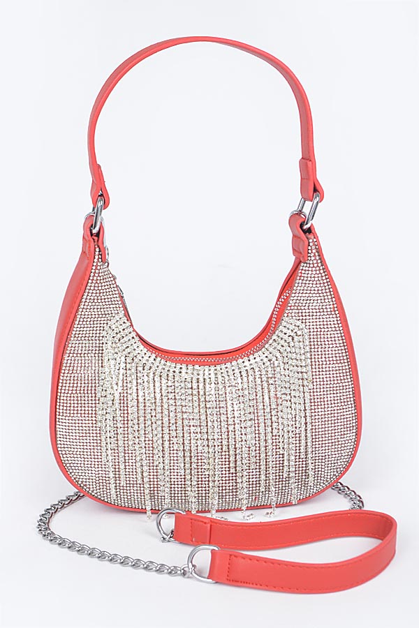 • * Hot Fix Stones Rhinestones Fringe Hobo Bag