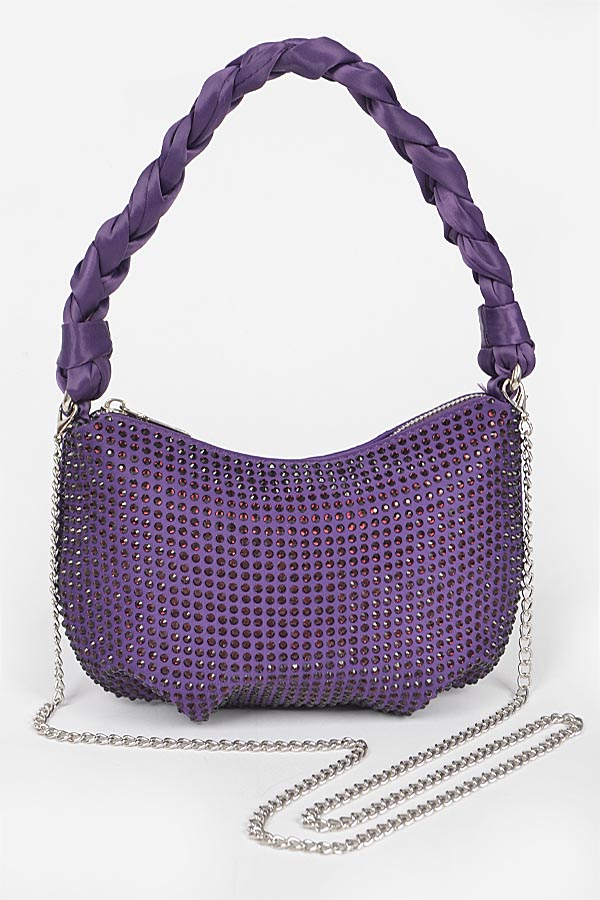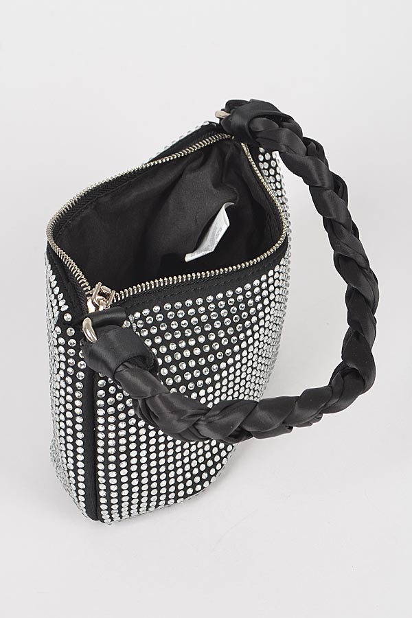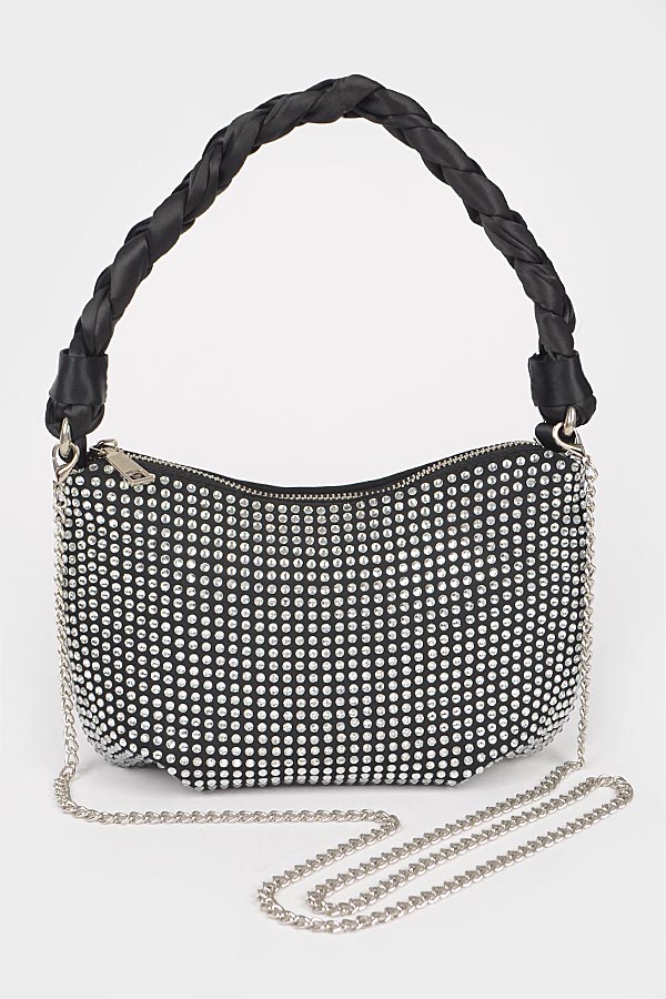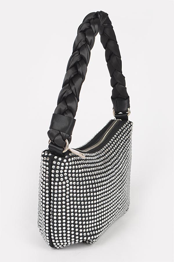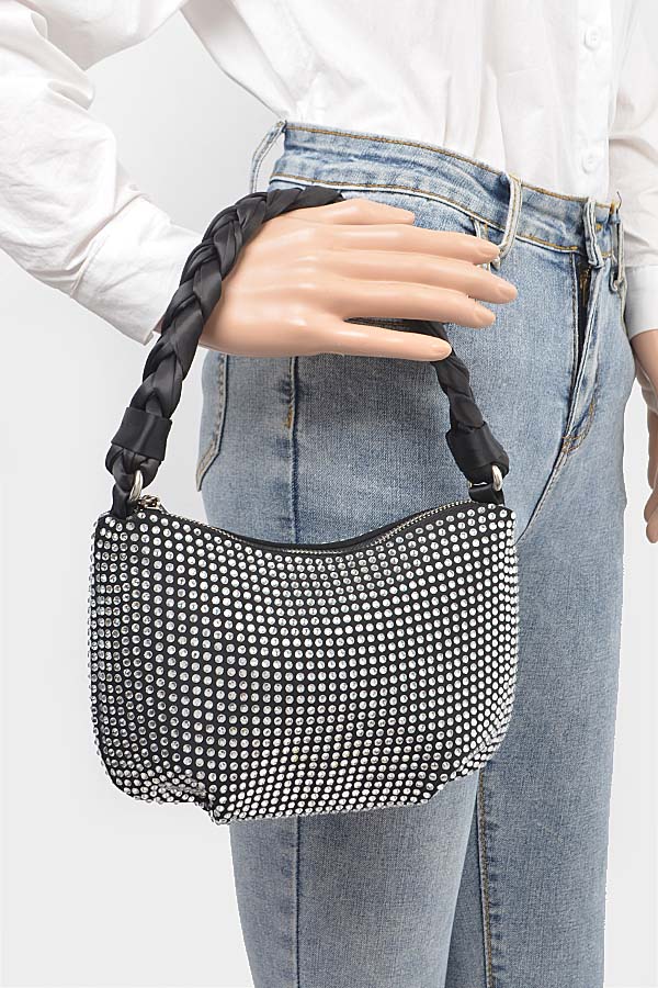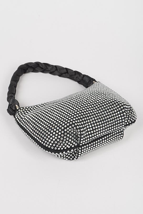 - * Hot Fix Stone Twisted Handle Small Hobo Bag
