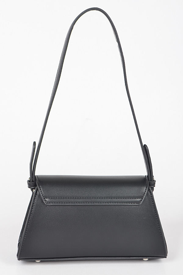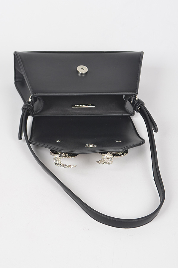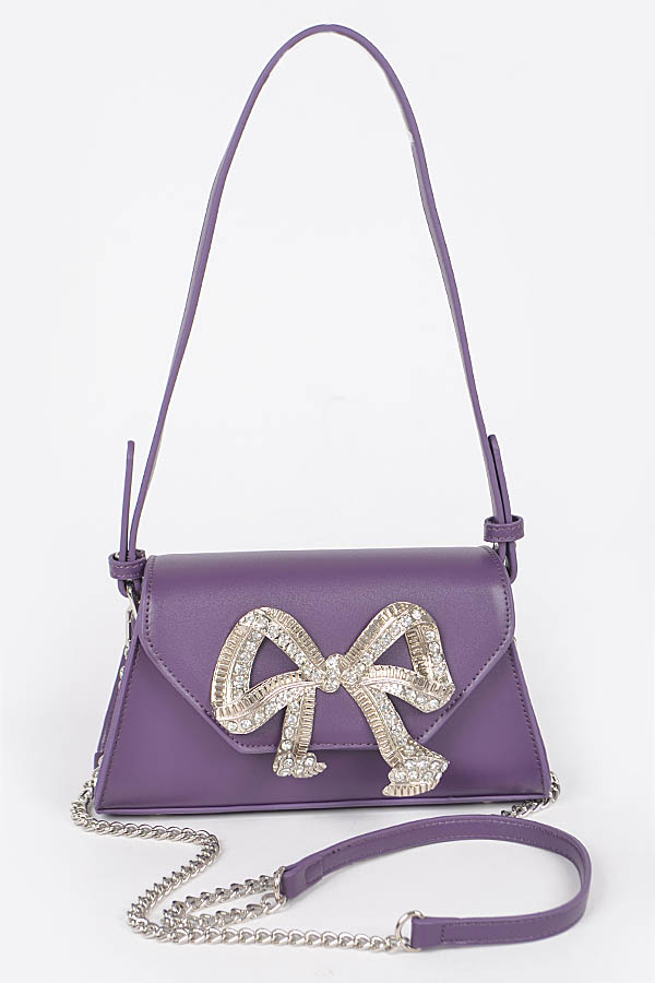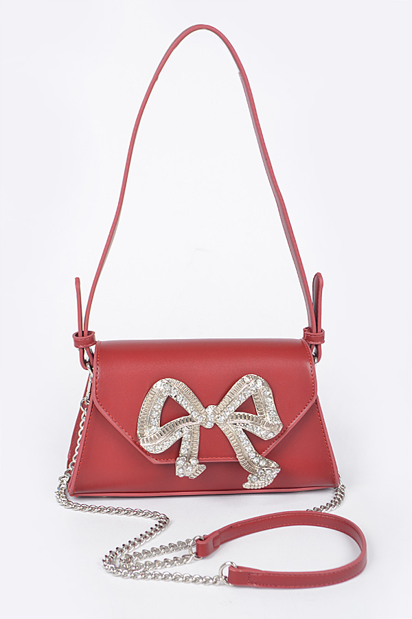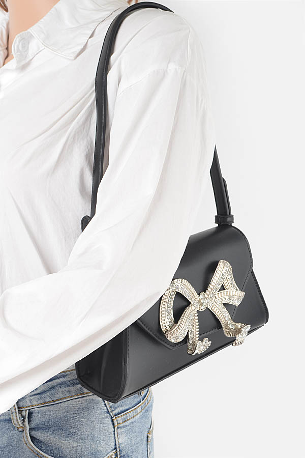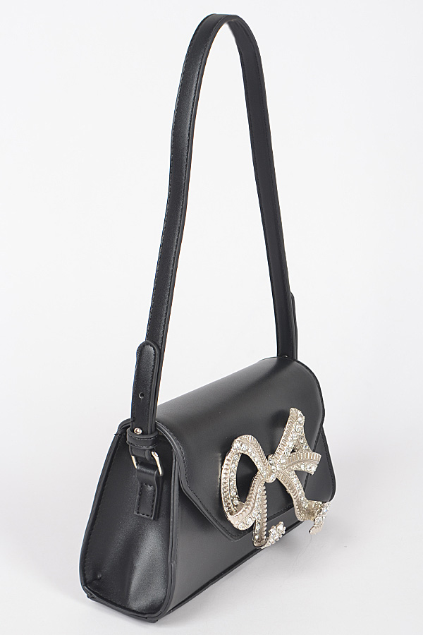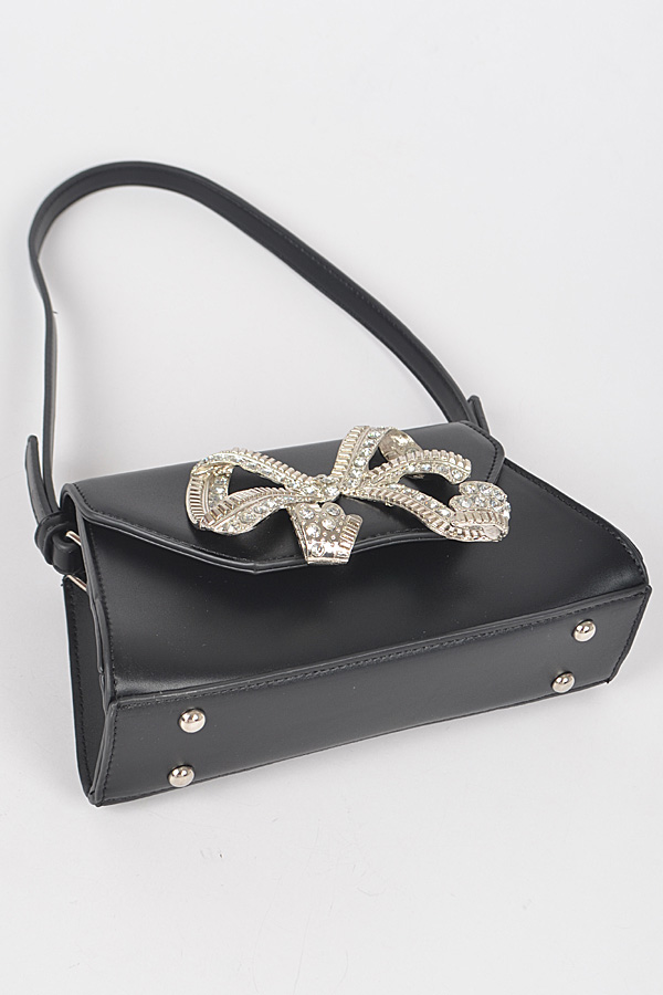 - * Vegan Leather Shoulder Bag W/Big Metal Ribbon