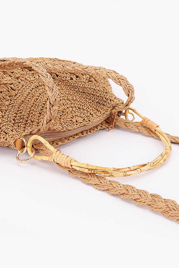 - * Faux Straw Bamboo Handle Bag from H&D Accessories features an intricately woven faux straw construction with a bamboo handle and braided shoulder straps for versatile carrying options. The openwork design adds a delicate, airy touch, while the structured silhouette offers ample space for daily essentials. Ideal for beach trips, summer picnics, or casual outings, this bag effortlessly brings a bohemian and natural vibe to your ensemble.